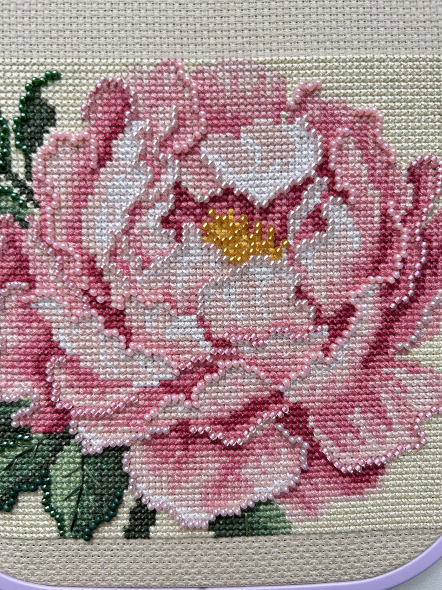 9 апреля Весна - время пионов Mill Hill MH14-2511 Peony (подбор) вышивала подбором: нитки DMC, Gamma, бисер -presiosa (подбирала по фото бисера Mill Hill из сети), канва Аида 14 каунт от Zweigart цвет светло бежевый. Auria, Bogdan, Adamiss и 6 других сказали спасибо Поделиться сообщением Ссылка на сообщение