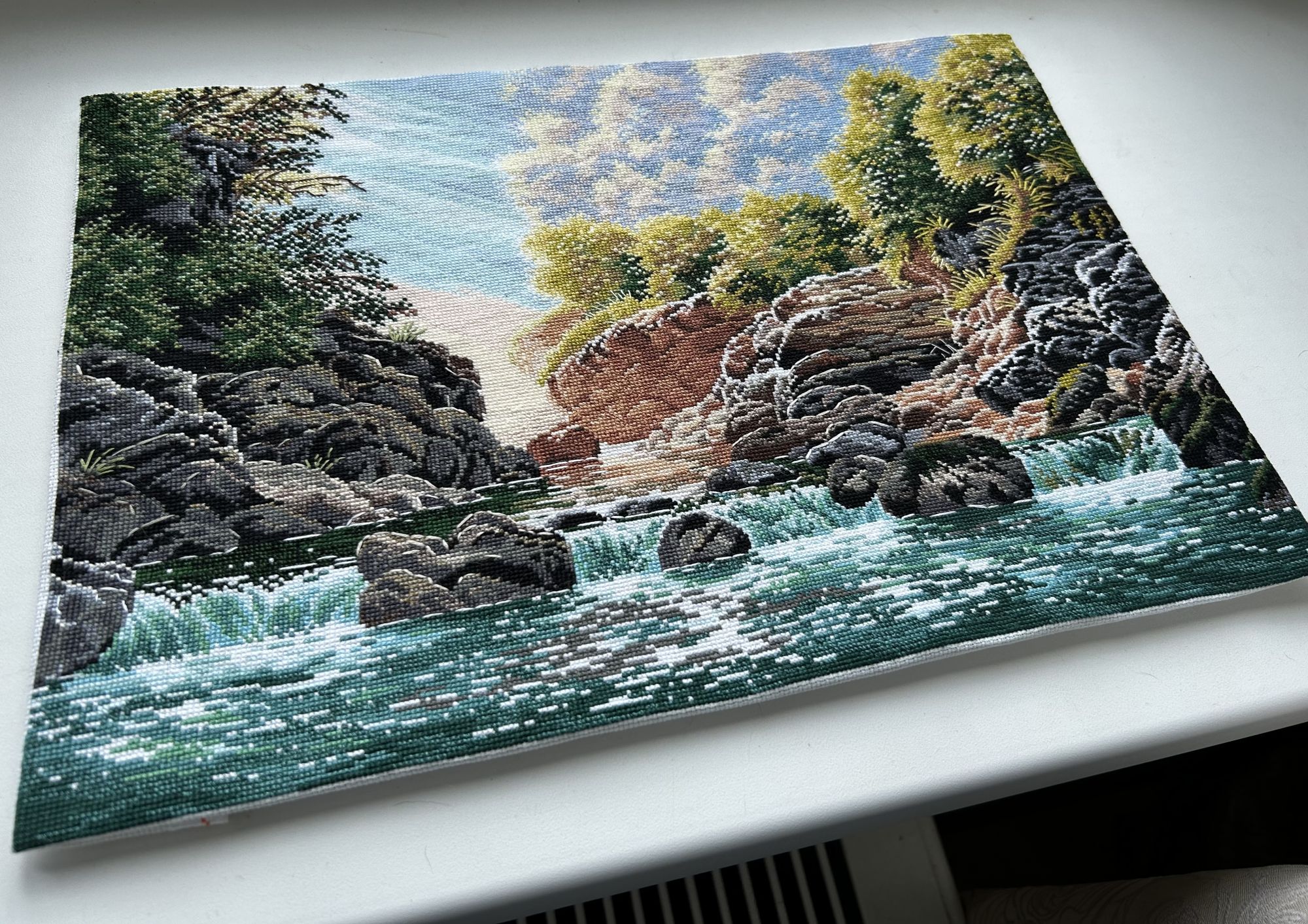 4 августа 02.08.2025 в 13:22, bambrik сказал(а): Гуамское ущелье от Овен завершено за весь период вышивания этот процесс пережил периоды «выбросить» и «какая красота получается». Нитки доводили меня до отчаяния, они местами просто отказывались ложиться в крестики, перекручивались, вязались в узелки на каждой протяжке, рвались нещадно (некоторые цвета). По итогам процесса я дала себе слово больше не покупать наборы от Овен с нитками ПНК, в запасах еще есть несколько наборов с этими нитками, но там я надеюсь на воскер. С приобретением Волкера для нитей работа пошла побыстрее, нитки начали протягиваться полегче, но удовольствия все рано стало меньше. Но некоторые нити (темного цвета и палитра изумрудно зеленых и большинство коричневых) были мягкими и очень приятными, укладывались мелкими красивенькими крестиками-бусинками (на 18 аиде они такие). Так что работа прошла все стадии от любви до ненависти и обратно. Могу с уверенностью сказать, что готовый результат на 100% стоил этого, картина получилась лучше, чем на превью набора, она сочная, солнечная, свежая, воздух на ней прозрачный без дымки. Поздравляю! Очень красиво, с нитками ПМК для меня просто подвиг, я их тоже не люблю bambrik сказал(а) спасибо Поделиться сообщением Ссылка на сообщение