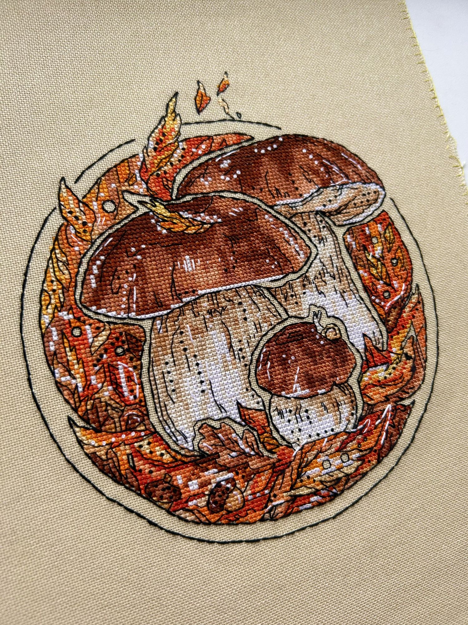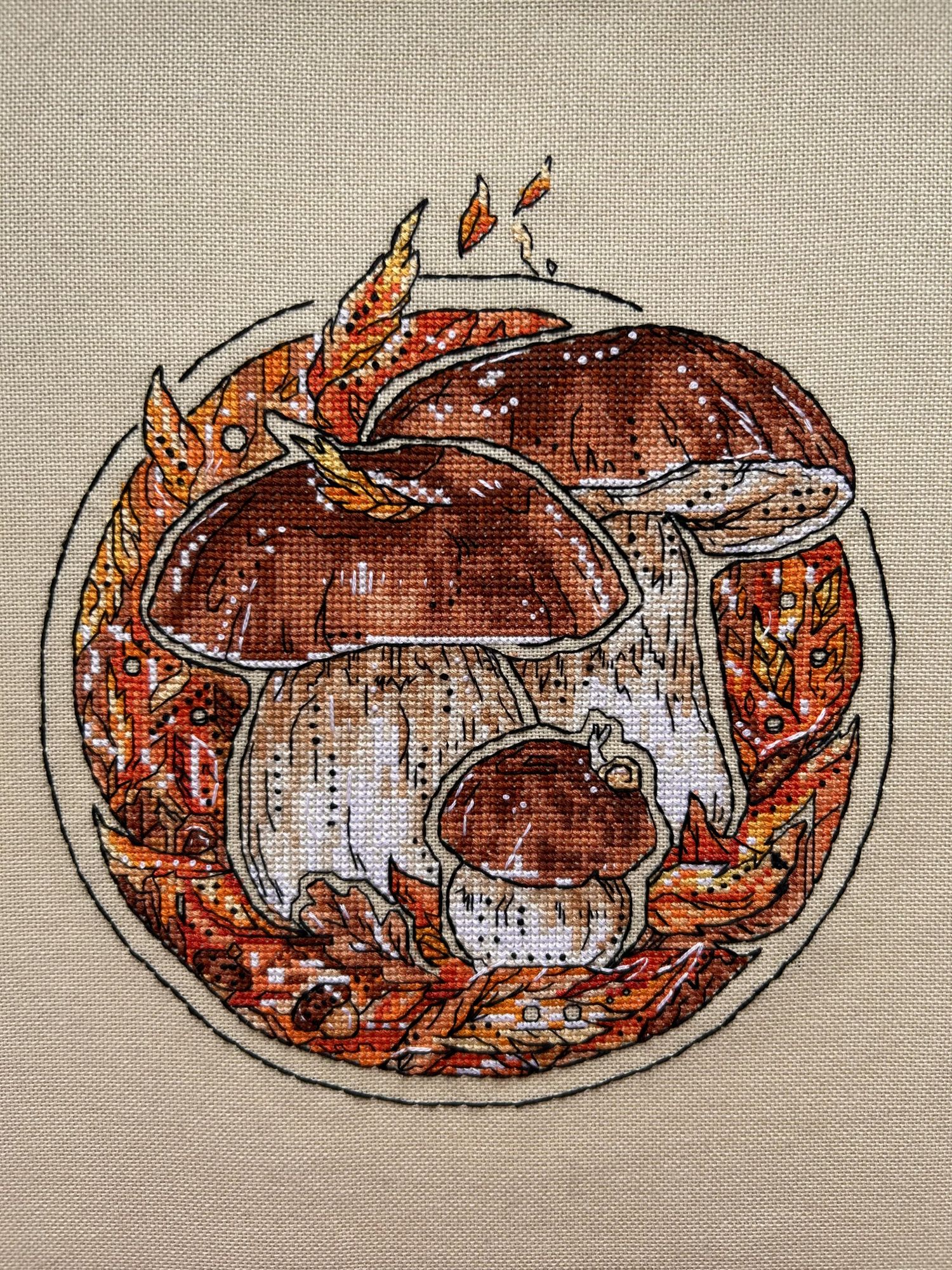 2 сентября Белые грибы от Алисы Окнеас завершила Вышивала нитками royal на Brittney 28 каунта цвет 3115 от Zweigart. Крестики вышила на одном дыхании, а вот с бэком в этот раз отложила процесс на несколько недель, не хотела его шить, его там Очень много. И вот решилась на бэк 31 августа, хотела завершить грибочки до 1 сентября, но не получилось, бэк занял один день и вечер, так что закончила его только 1 сентября поздно вечером. Результатом очень довольна! Millanka, dinakopacheva, relax_cross_stitch и 4 других сказали спасибо Поделиться сообщением Ссылка на сообщение