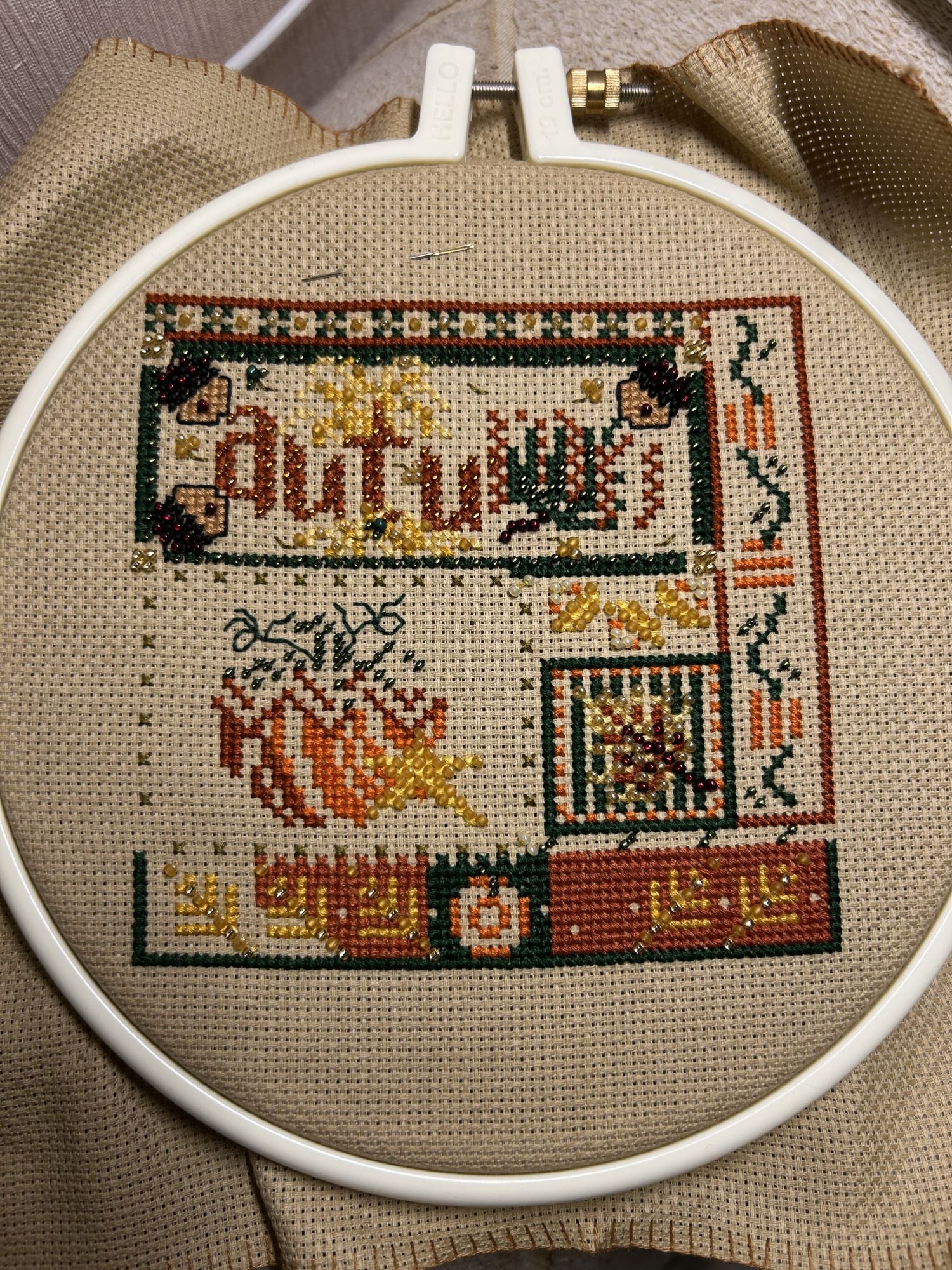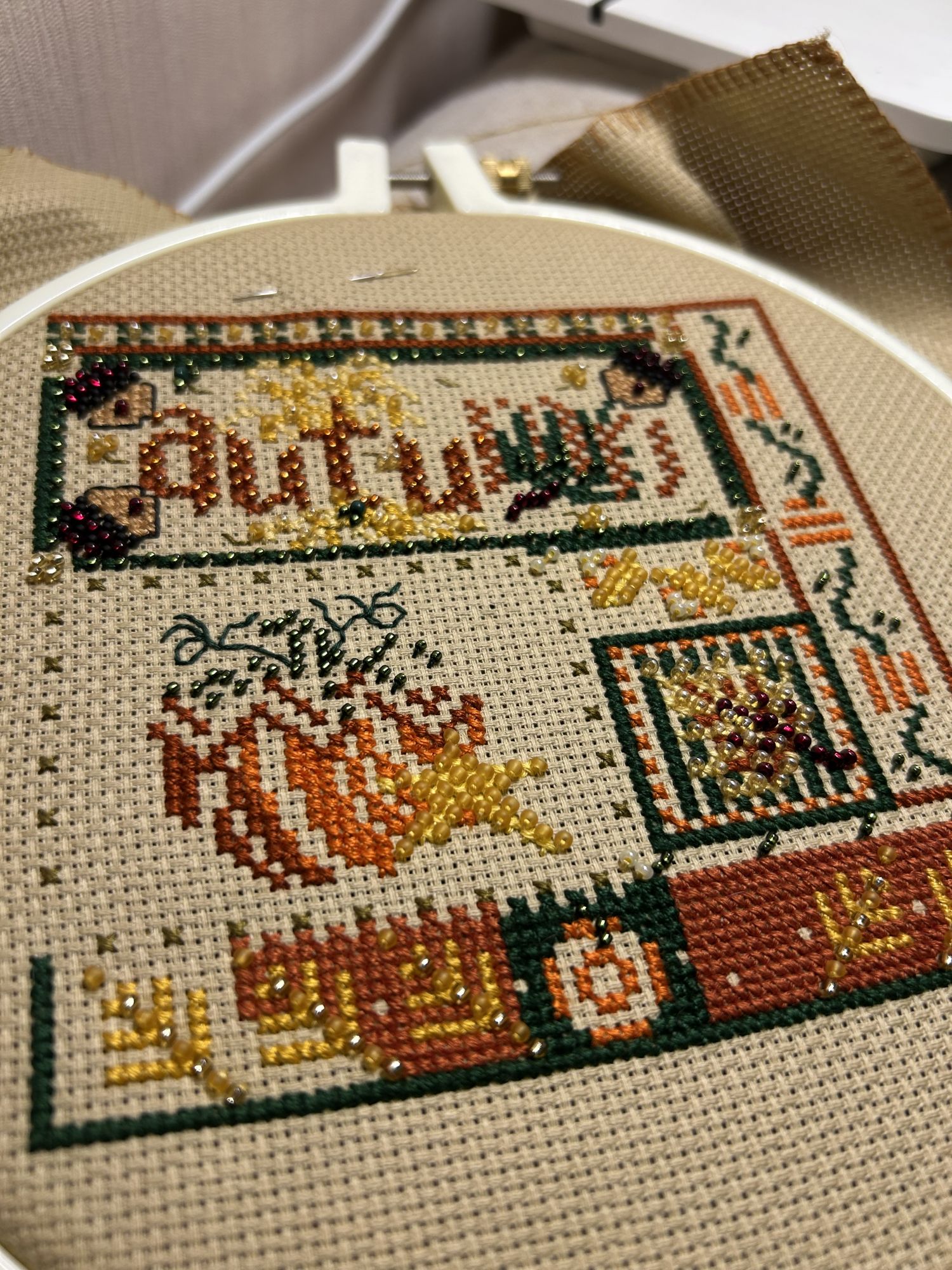26 ноября Вышивала осенью и завершила осенний коллаж от Mill Hill подбором Mill Hill - Buttoned and Beaded Kit - MHCB218 Autumn Collage (подбор) Вышивала мулине: DMC, Gamma, Luca-S, ПНК им. Кирова. Бисер использовала Mill Hill, Miuyki, Toho и Preciosa. В качестве пуговки пошли 3 микро пуговки листика. Канва Аида 14 каунта китайская, но хорошая по качеству. Оформление в готовую пластиковую рамочку. Гало4ка, maybeshewill, Adamiss и 5 других сказали спасибо Поделиться сообщением Ссылка на сообщение