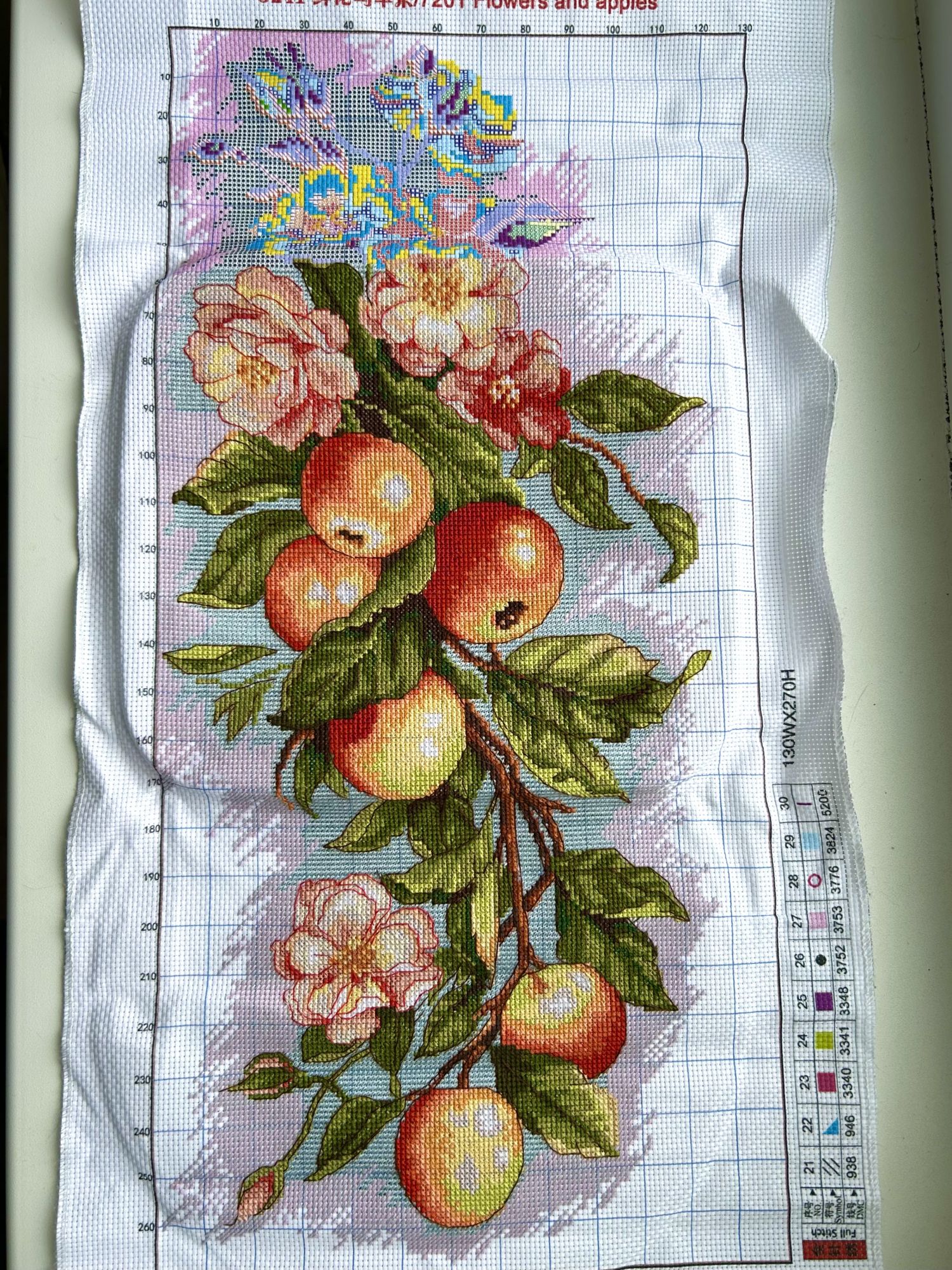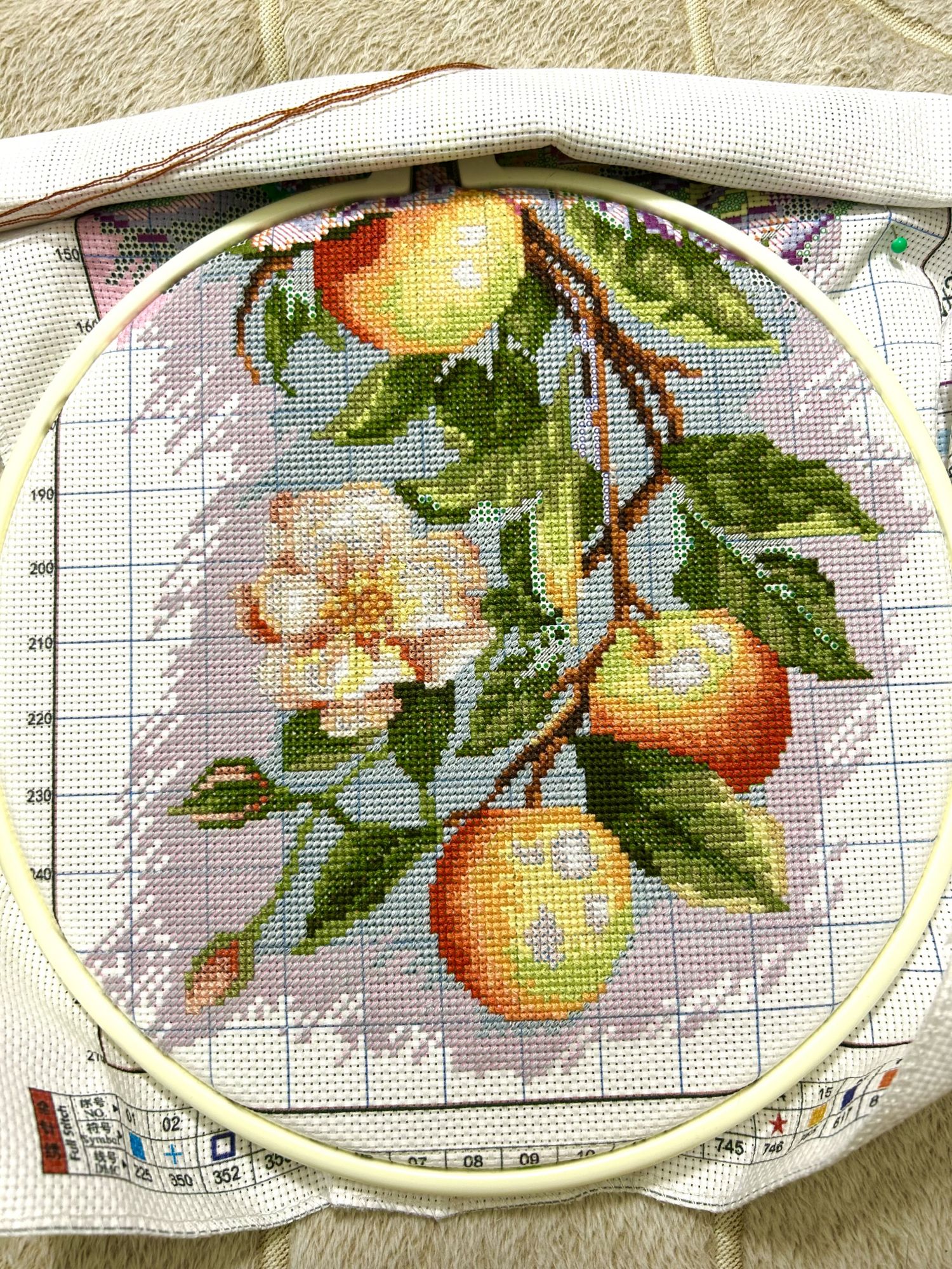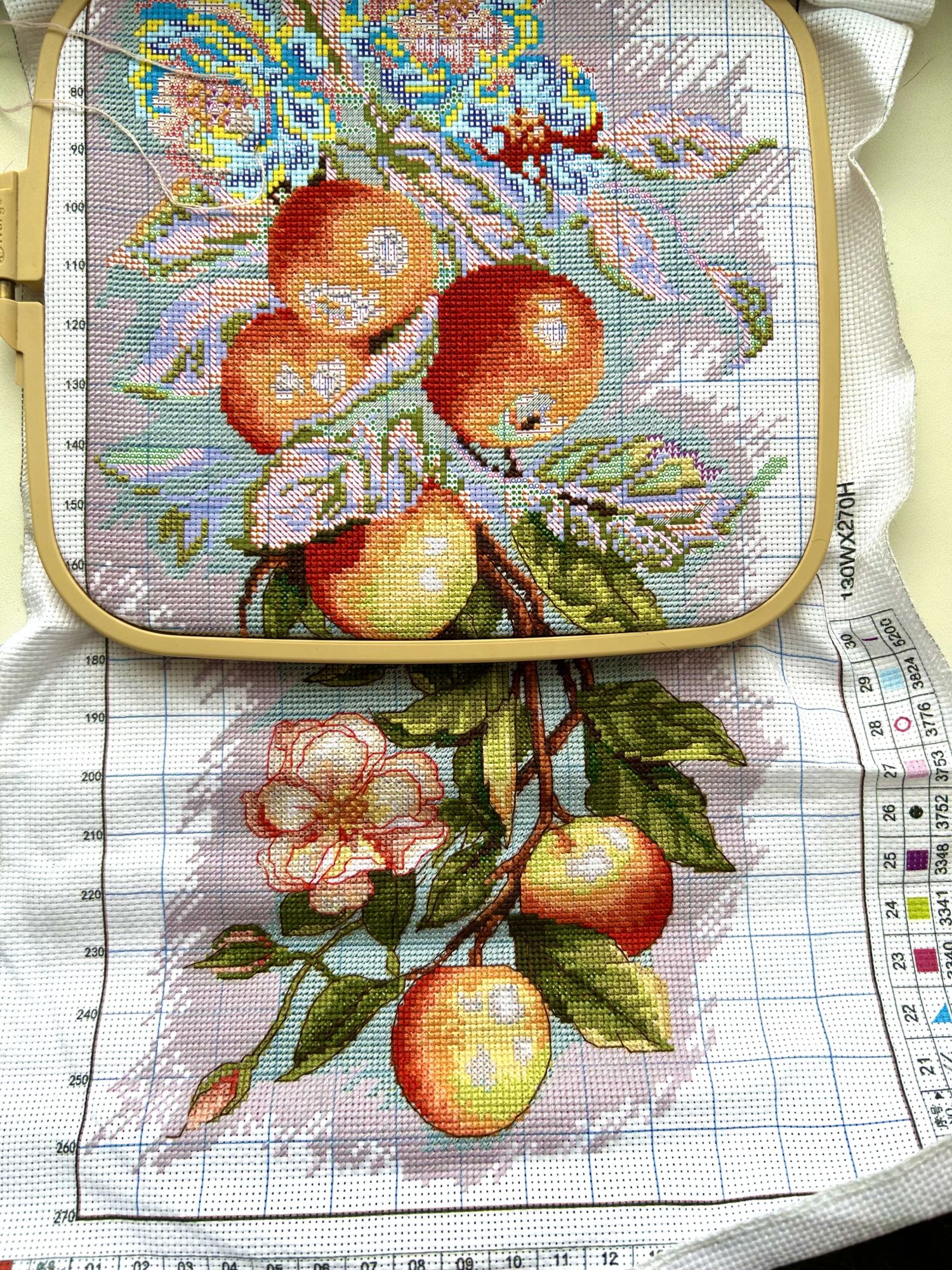 20 декабря Не смогла удержаться и начала процесс по нанесенке (иногда хочется легкого и быстрого процесса без заглядывания в схему). Эти яблоки меня давно привлекали. Joy Sunday J241 Цветы и яблоки процесс продвигается очень быстро 55% за 7 дней. Статистику веду по саге, схему переделывала из перенабара аналогичного дизайна от Luca-S, у Joy Sunday один цвет убран из яблок и фон крестом вышивается (перевела его в полукрест). svetlana62, Гало4ка, Adamiss и 3 других сказали спасибо Поделиться сообщением Ссылка на сообщение
