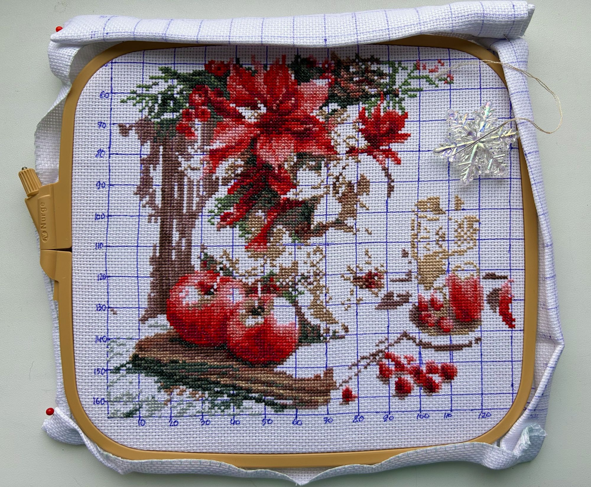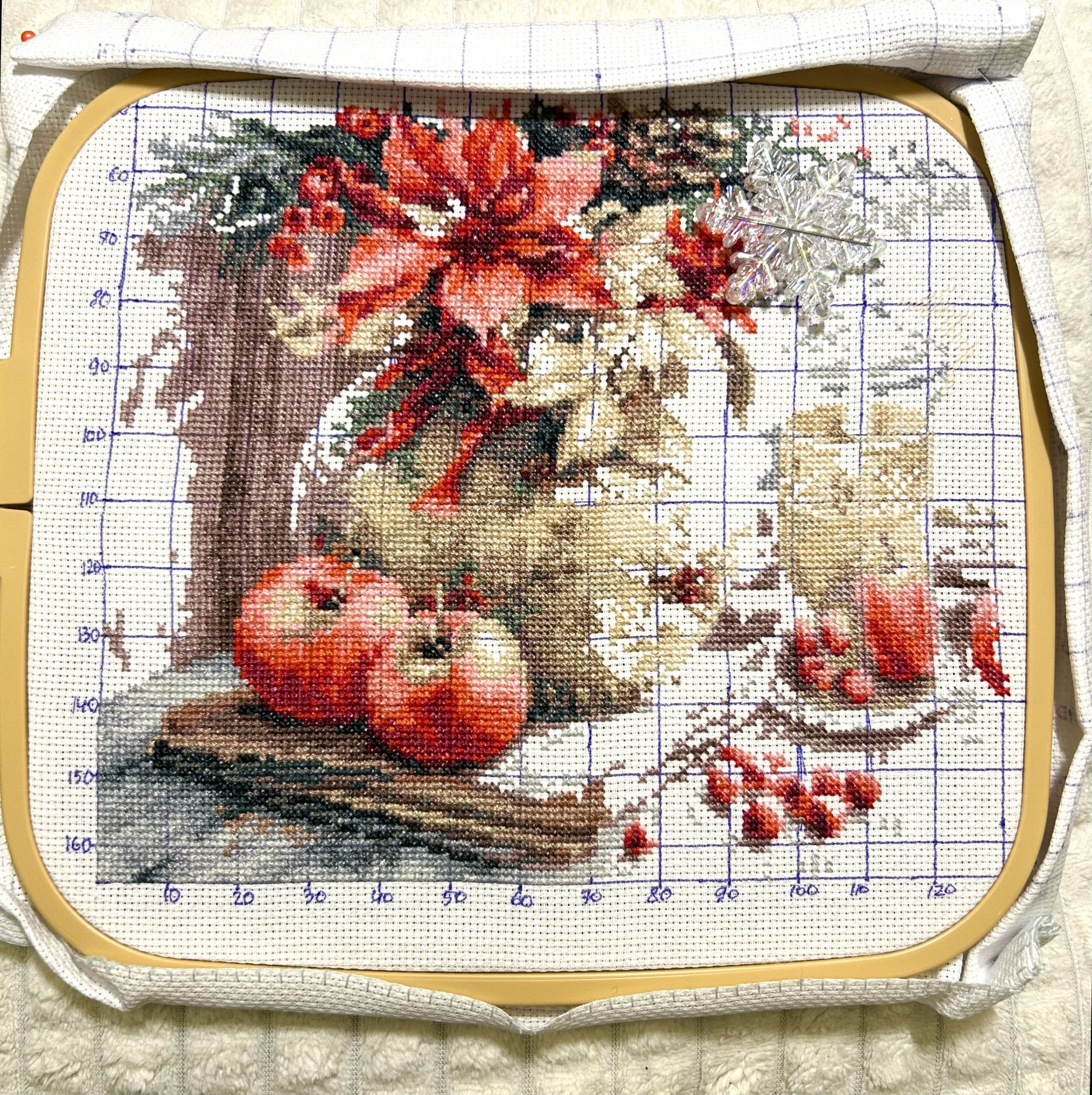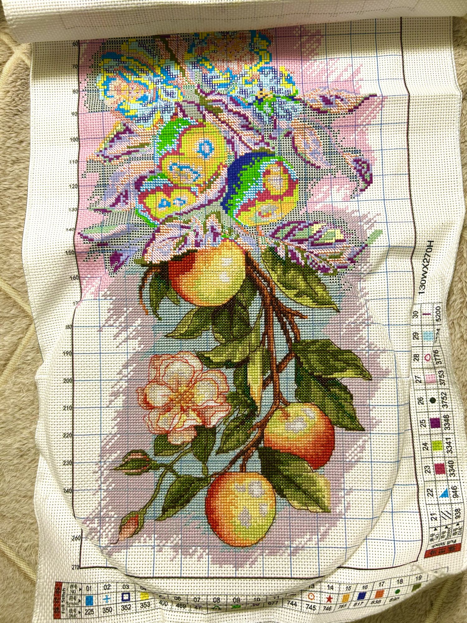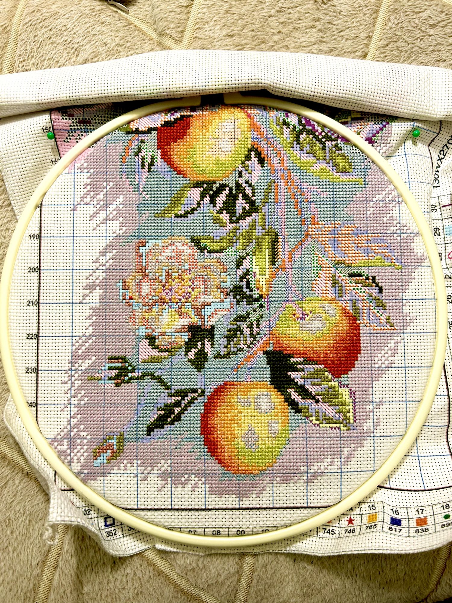 20 декабря Не смогла удержаться и начала процесс по нанесенке (иногда хочется легкого и быстрого процесса без заглядывания в схему). Эти яблоки меня давно привлекали. Joy Sunday J241 Цветы и яблоки процесс продвигается очень быстро 55% за 7 дней. Статистику веду по саге, схему переделывала из перенабара аналогичного дизайна от Luca-S, у Joy Sunday один цвет убран из яблок и фон крестом вышивается (перевела его в полукрест). svetlana62, Гало4ка, Adamiss и 3 других сказали спасибо Поделиться сообщением Ссылка на сообщение