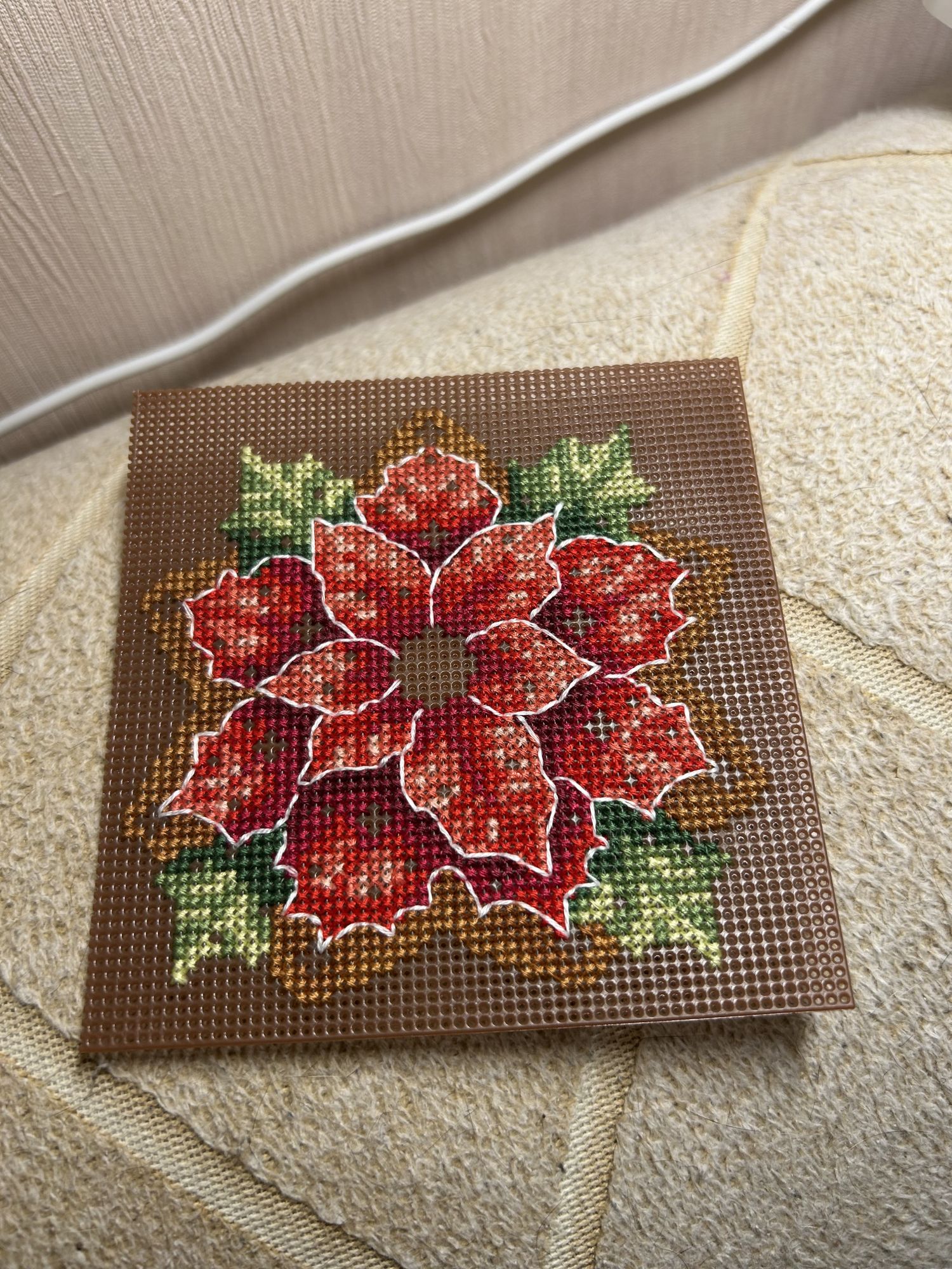 20 декабря Вышита очень красивая пуансетия (новогодняя игрушка) по схеме Натальи Черепановой. Очень нравится вся серия этих пряноков Черепанова Наталья (nata0179) #57375 "Пуансеттия" вышивала нитками royal, gamma, DMC, ПНК на коричневой пластиковой канве. Lysinda, Leutnant Ripley, Гало4ка и 1 другой сказали спасибо Поделиться сообщением Ссылка на сообщение