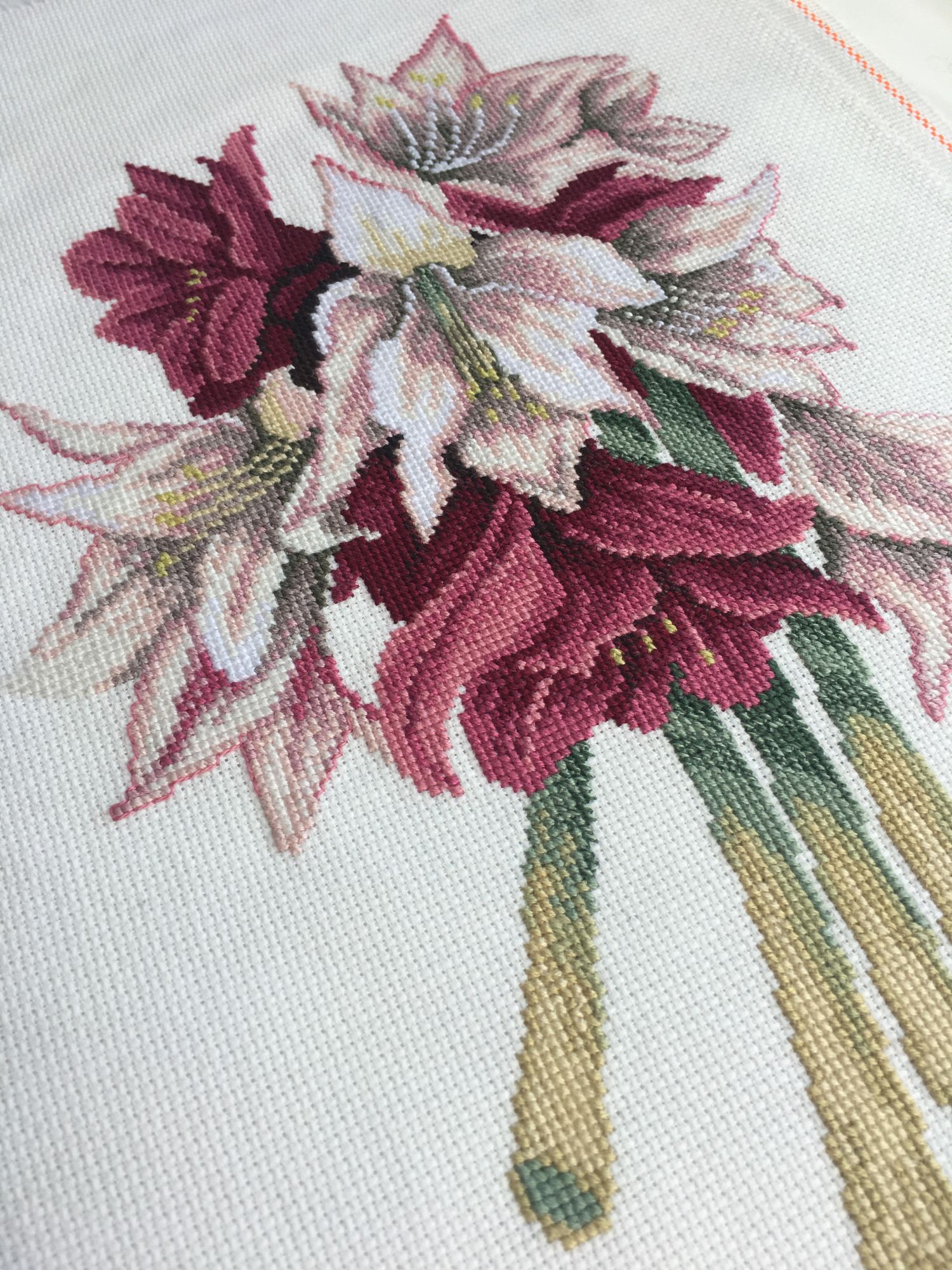 6 марта 2019 И последний мой начатый процесс на март 2019 года, цветы, которые я хотела вышить когда это ещё была новинка. Знала, что когда-нибудь вышью их, но все никак не доходили руки и вот этой весной пришло время этой красоты. Lanarte 35146 Amaryllis (Амариллисы) Аида 18, нитки DMC по ключу, оригинальная схема ОльгаТольна, Кисуля, sette venerdi и 7 других сказали спасибо Поделиться сообщением Ссылка на сообщение