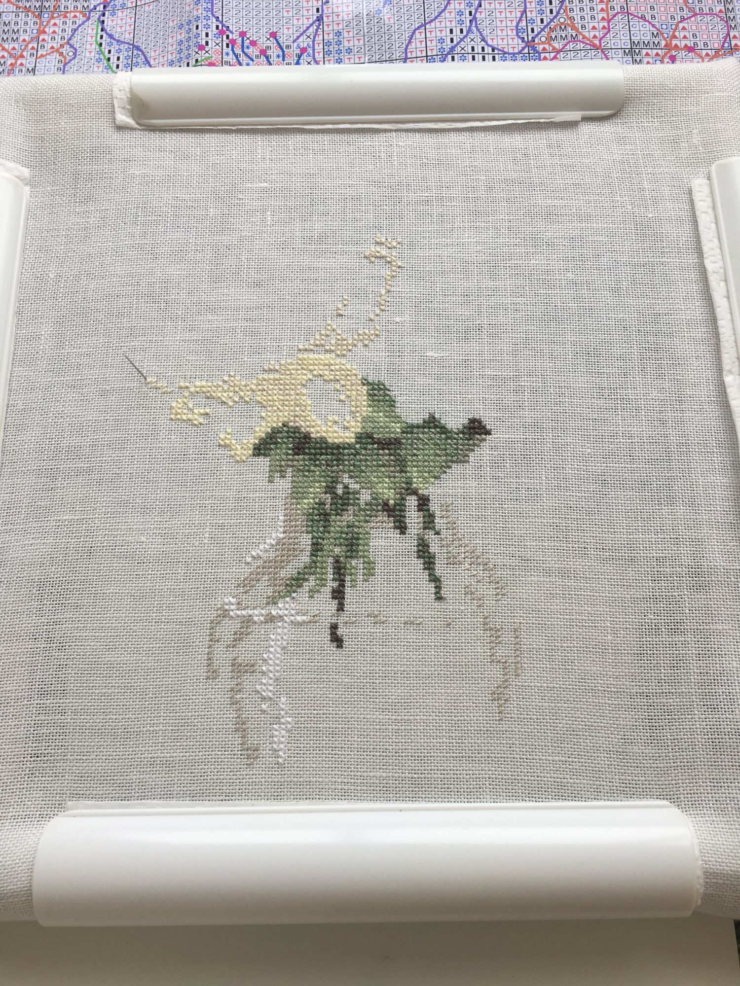 28 июня 2019 Вчера перебирала свои вышивальные запасы, ничего не хотелось начинать, просто было настроение «как Кащей над златом чахнуть». И меня посетило вдохновение, а отталкивалось оно от Белфаста, который лежит у меня в запасах с конца февраля. Белфаст этот прекрасен своим голубо-серым цветом, который в разном освещении смотрится по своему, но всегда прекрасен. И вот пришло его время, я увидела на нем замечательный букет от Dimensions. Dimensions 35228 Цветы в высокой вазе (Flowers in Tall Vase) Подбор Вышиваю этот процесс подбором: нитки royal (хлопок), основа Белфаст Zweigart 32 каунт цвет 3609/7011 (100% лён) nogres, Лаки, maui и 4 других сказали спасибо Поделиться сообщением Ссылка на сообщение