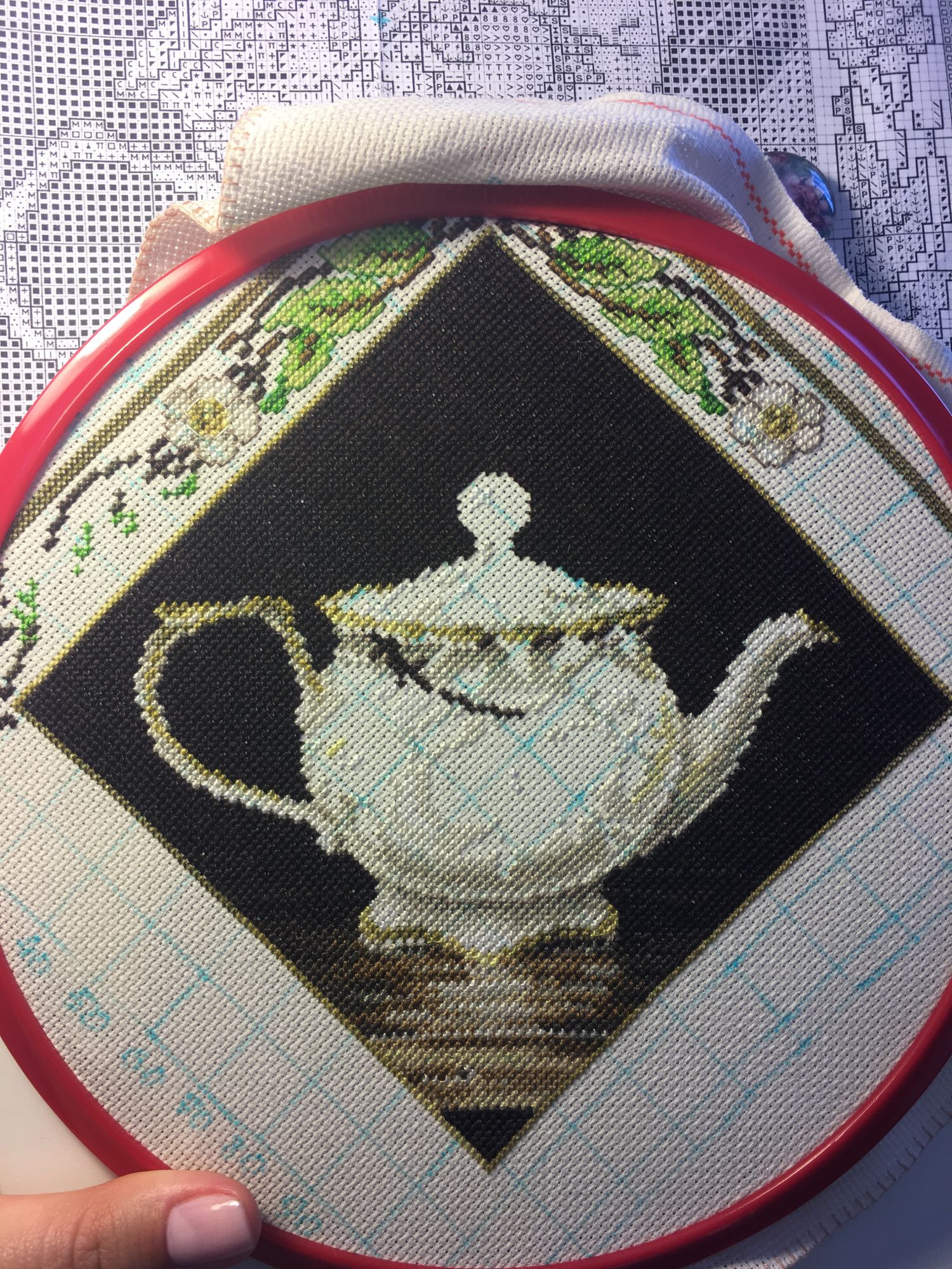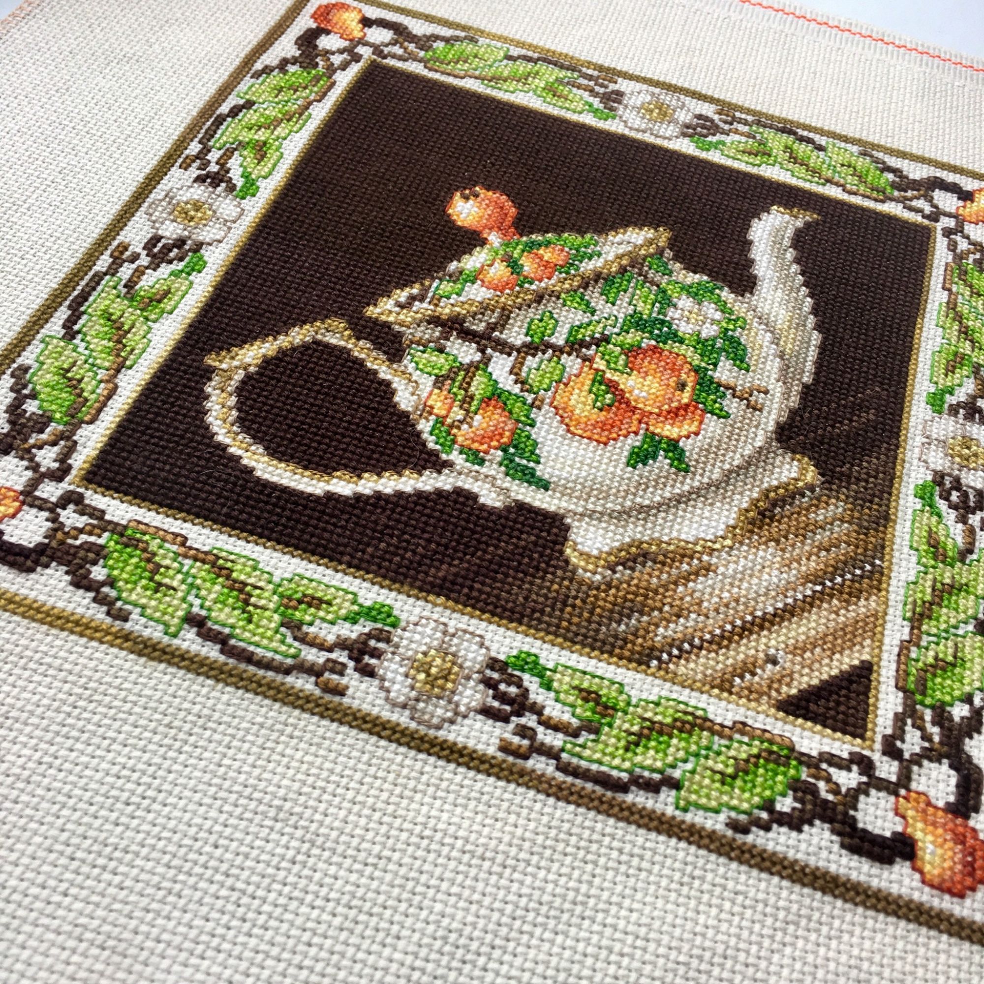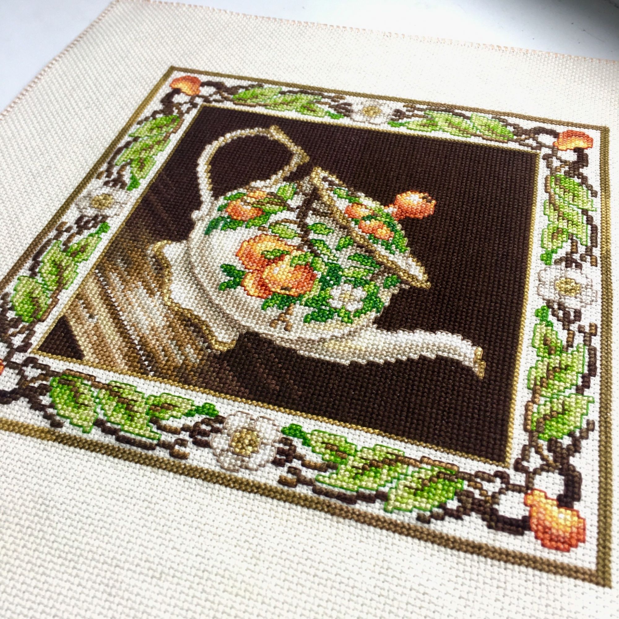 5 августа 2019 Больше пяти лет назад я нашла схему летнего чайника с грушами. Распечатала ее и начала изучать. Тогда меня отпугнуло море бека и его непонятная инструкция. Подруга пыталась мне помочь, переводила мне инструкцию, но меня все равно испугал Бэкон, который на схеме не отличался друг от друга. Спустя года я нашла эту схему в папке, перевела бек до конца, собрала ниточки, нашла канву и пустилась в процесс. Чайник с Грушами Процессом насладилась. Бэк оказалось вышивать легко, главное понять смысл. Чайник оказался намного ярче, чем на превью из журнала. Схема из испанского журнала, в ключе представлены нити DMC, Anchor и Finca. Мой выбор материалов: канва Аида 18 каунта Zweigart, мулине DMC. Majena, Egelia, Кисуля и 8 других сказали спасибо Поделиться сообщением Ссылка на сообщение