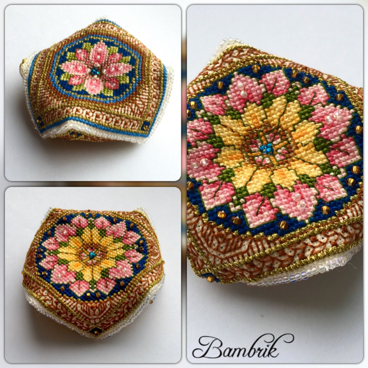 19 февраля 2020 Вчера закончила небольшую работу, которая заняла у меня 2 дня. Biscornu по мотивам Joan Elliot “Easter Promise Sampler” Очень захотелось сделать домик для иголочек и эта вещица отлично справляется с этой задачей. В работе использованы нити DMC (не все по ключу), Аида zweigart 18 каунта цвета ivory и бисер трёх цветов. Кисуля, Гало4ка, Аринесса и 2 других сказали спасибо Поделиться сообщением Ссылка на сообщение
