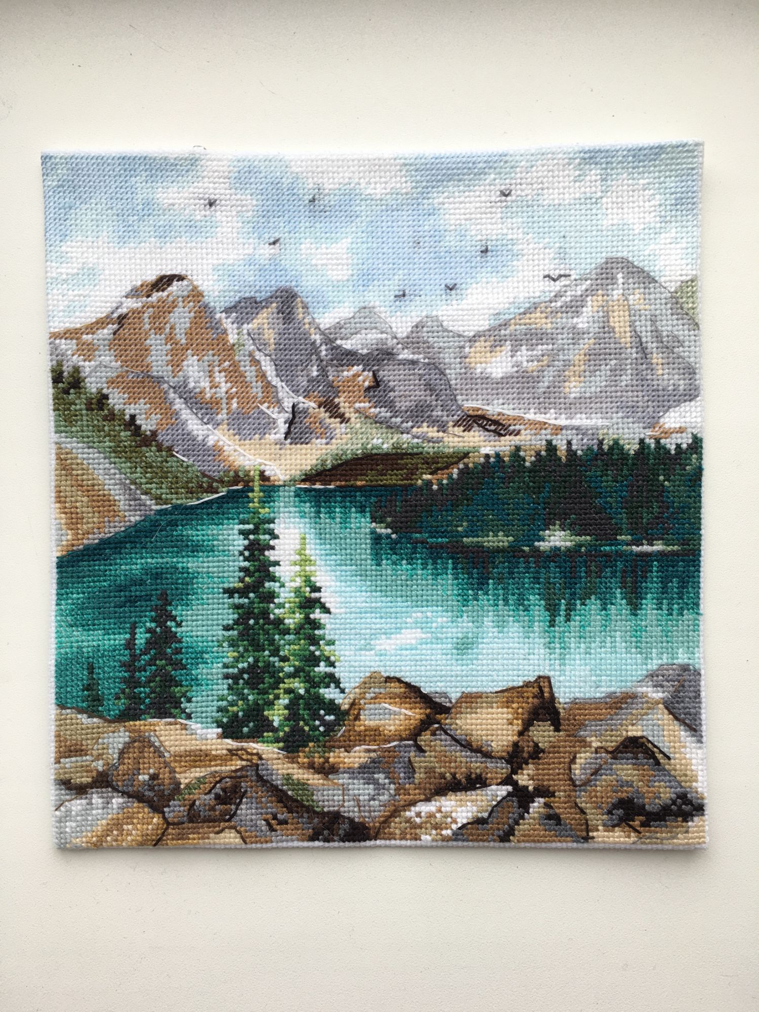 6 марта 2020 Вчера завершила процесс, новинку прошлой весны, который я очень хотела в свою коллекцию Овен арт.1256 «Озеро Морейн» Это первая моя работа полностью законченная по набору Овен (в процессах ещё есть «Мороз и солнце» от Овна) и процесс мне понравился. Ниточки ПНК им. Кирова мне очень понравились по тактильным ощущениям и ложатся они ровно. В этом наборе канва не zweigart (отличия есть), но неплохая и вышивать на ней было тоже приятно. Но заметила, что нитки ПНК все таки лучше дождаться на zweigart особенно на аиде 16 каунта. rolihka, Кисуля, ЛАДОМИРА и 6 других сказали спасибо Поделиться сообщением Ссылка на сообщение