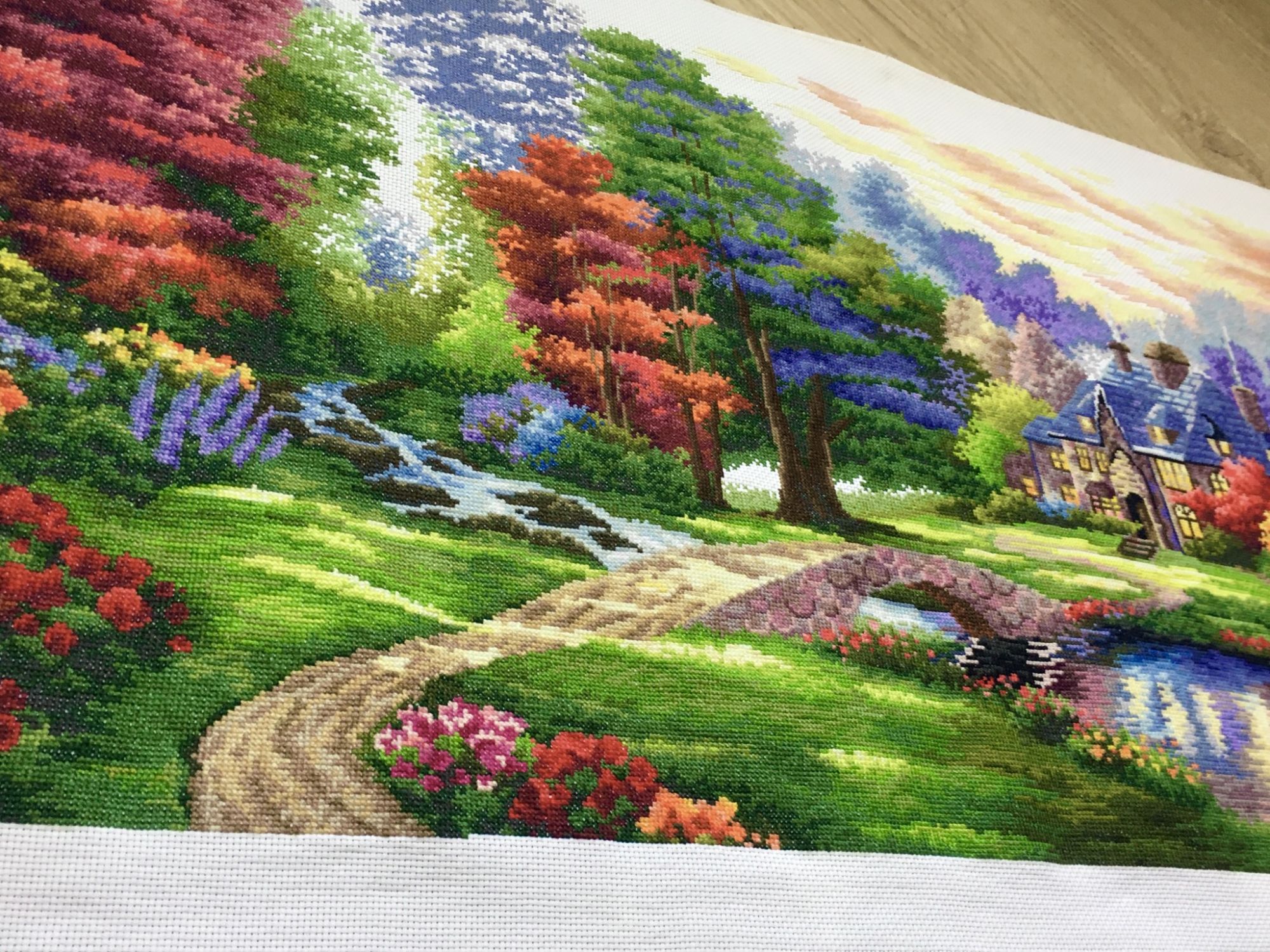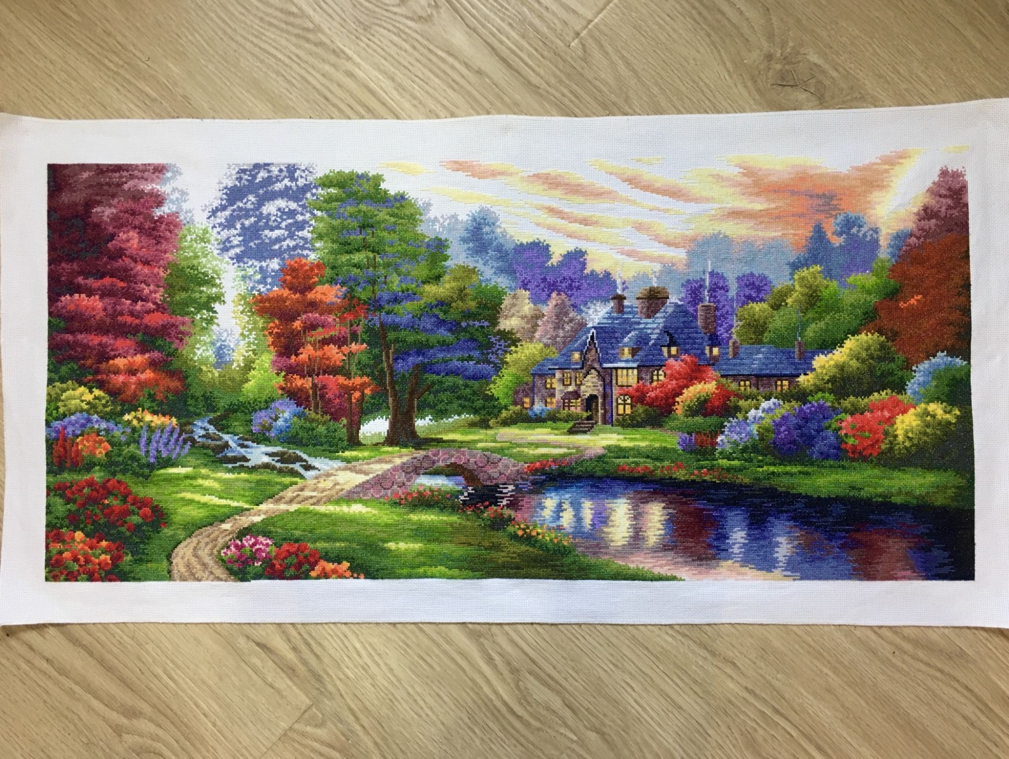 1 июня 2020 Процесс с домиком был завершён 30 мая в 4 часа утра Мой вывод: набор по нанесённой схеме на канву- это находка, чтобы вышить такой большой процесс. Очень понравилось вышивать такую красочную работу. Размер готовой вышитой работы после стирки составляет 93х43 см. Вышивала его 1 год с 1 июня 2019 года по 30 мая 2020 года. Если посчитать чисто вышивальные дни, то в районе 3-х месяцев. maui, rolihka, sunny981 и 6 других сказали спасибо Поделиться сообщением Ссылка на сообщение