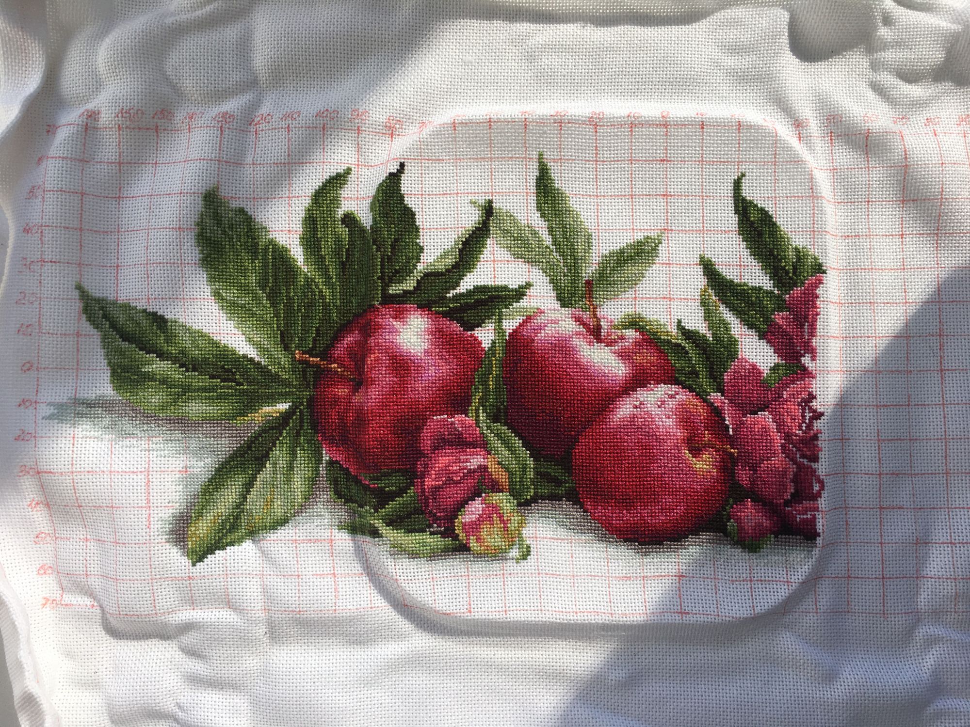 1 августа 2020 Продвижение по пионам и красным яблокам от Luca-S. Нитки радуют сочностью цветов. Очень нравятся нитки Anchor в наборах от Luca-S, ими так легко вышивать. Впервые вышиваю на основе Belana 20 каунта от Zweigart, странные ощущения, ткань мелкая, но ниточки проходят сквозь переплетения легко, только не всегда ложатся ровно. ЛАДОМИРА, maui, Кисуля и 1 другой сказали спасибо Поделиться сообщением Ссылка на сообщение