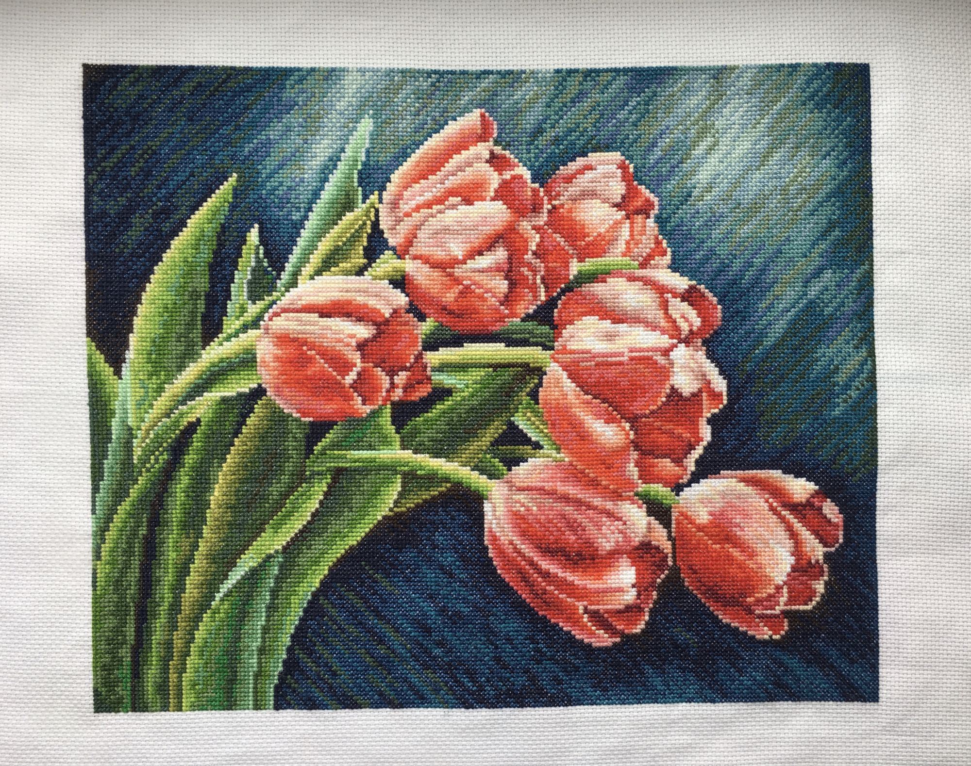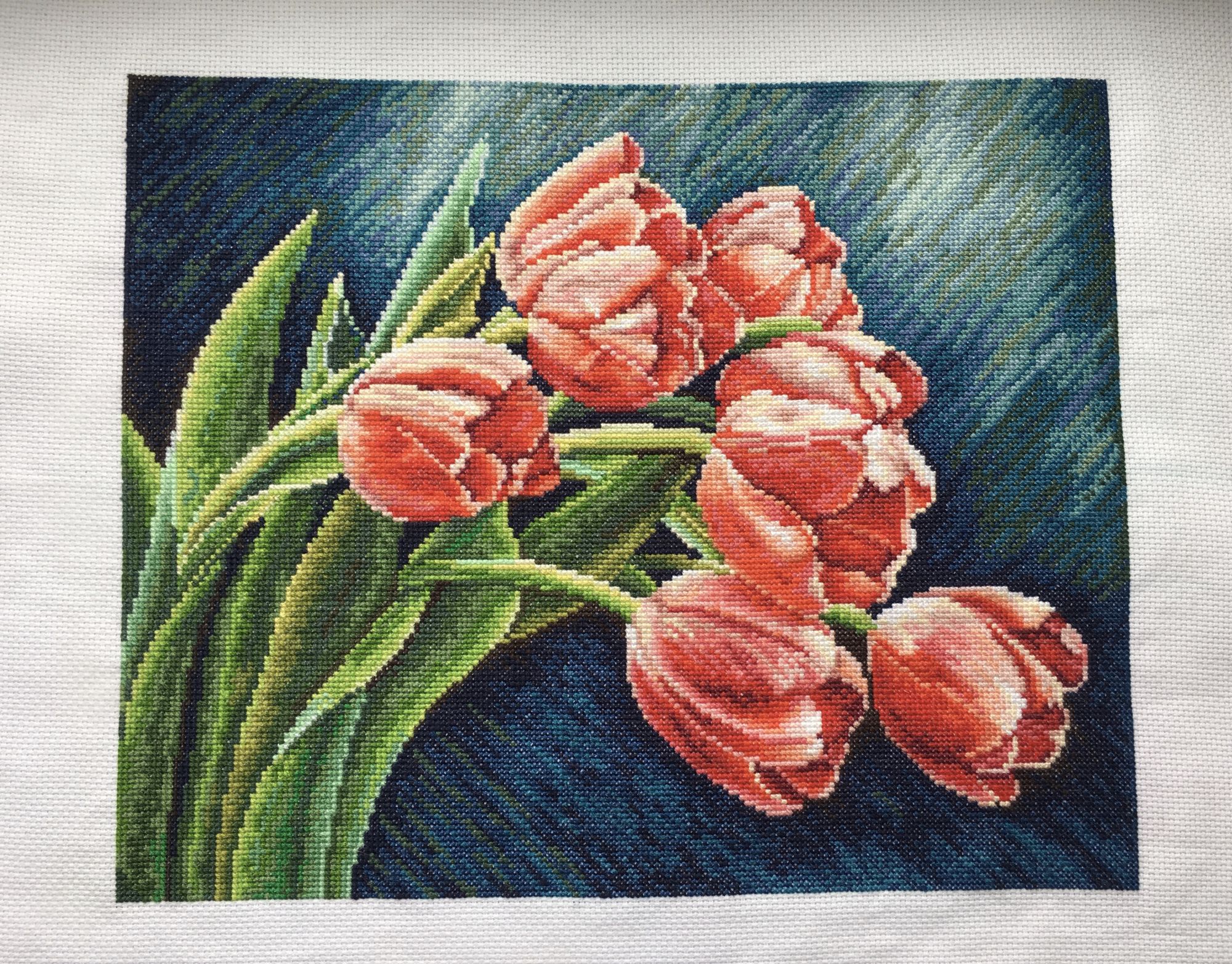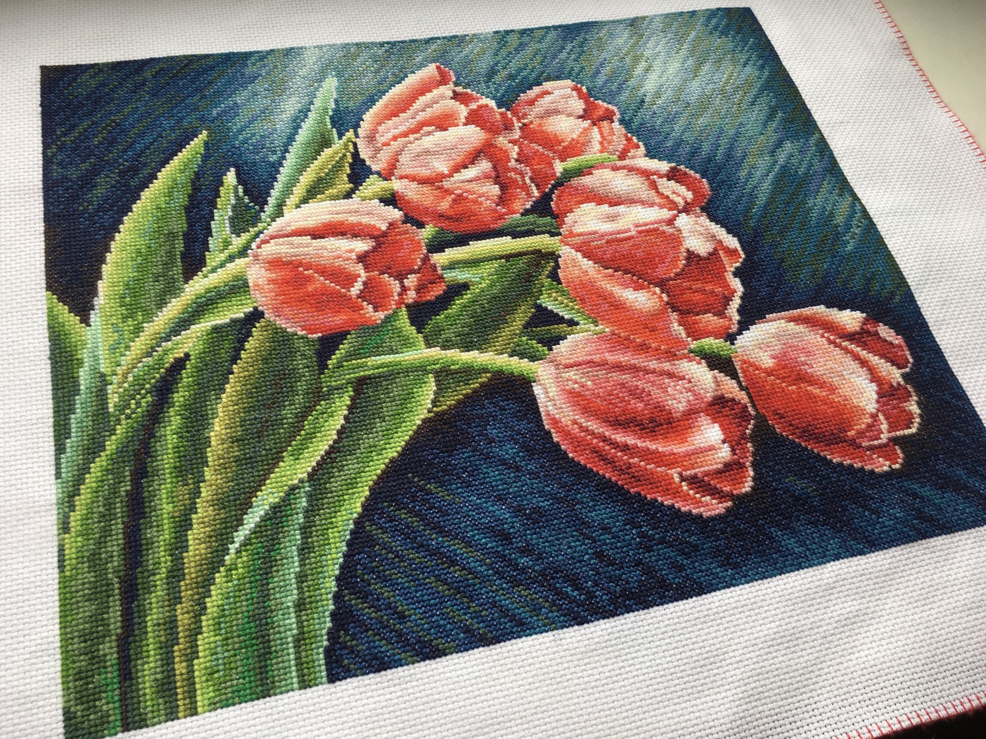 12 мая 2022 Весення работа завершена Сделано с любовью «Для прекрасных дам» арт. ЦВ-076 на вышивку ушло 25 дней, вышивала без перерывов на другие работы, летела на одном дыхании! Нитки - цветотерапия, качество хорошее, в узелки не завязывались и не рвались. Отдельного упоминания стоит канва - по началу показалась жесткой, но в процессе работы она стала безумно приятной, как zweigart, очень понравилось вышивать на ней и рада, что не заменила её (как планировала). Канва в наборе 14 каунта, планировала менять ее на 16 Аиду, думала, что темный фон будет светить, но оказалось плотность оптимальная, удобно вышивать и просветы не такие большие, картина красочная и не блекнет. В пару к этим тюльпанам присмотрела орхидею от этого же производителя. Хозяйка смешных зверей, Gold_taurus, ЛАДОМИРА и 4 других сказали спасибо Поделиться сообщением Ссылка на сообщение