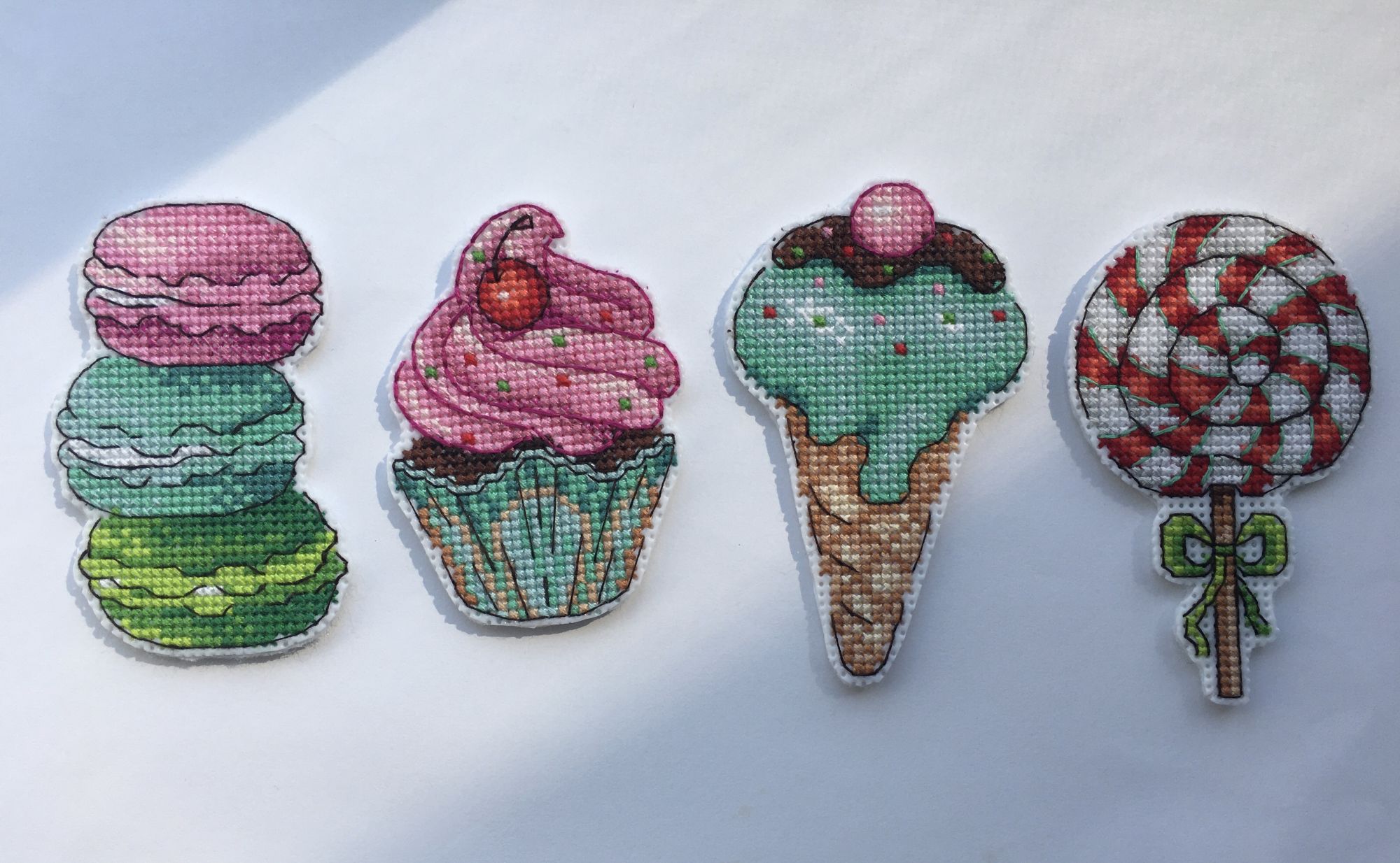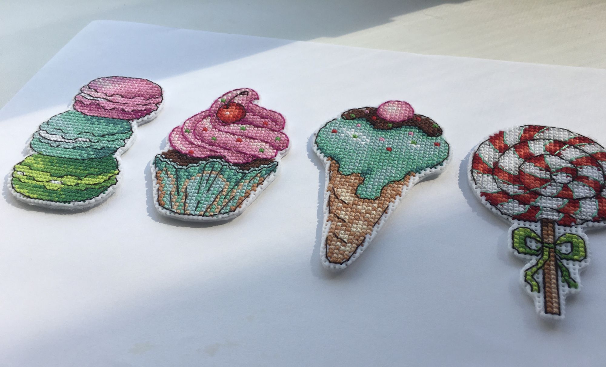 8 июля 2022 Пару дней отдохнула на магнитах от Жар-Птицы МП Студия (Жар-Птица) арт. Р-272 «Сладости для радости. Магниты» Такой потрясающе сладкий дизайн! Цвета ниток ми ми ми и сладости получаются красивые, жаль на фото яркости ниток не видно. Ниток осталось ещё на один отшив, так что буду ещё вышивать все 4 сюжета на равномерке)))) По саге шьётся как отдыхалочка и бэк не напряжный! Думала, что леденец на палочке будет вышиваться не интересно и муторно, а он к меня вылился быстрее всего и бэк «проложился» сам собой, играючи! Гало4ка, Хозяйка смешных зверей, ЛАДОМИРА и 2 других сказали спасибо Поделиться сообщением Ссылка на сообщение