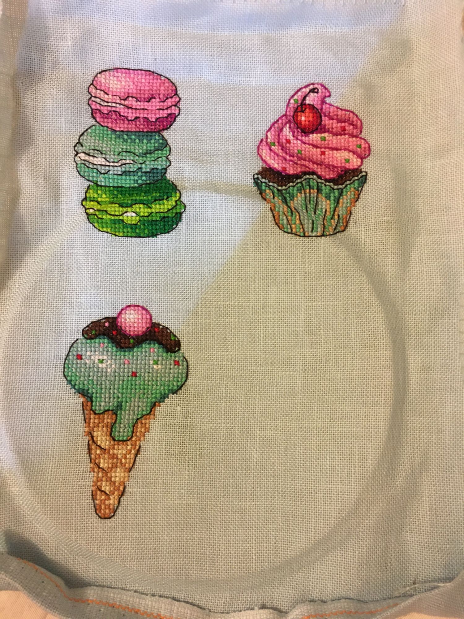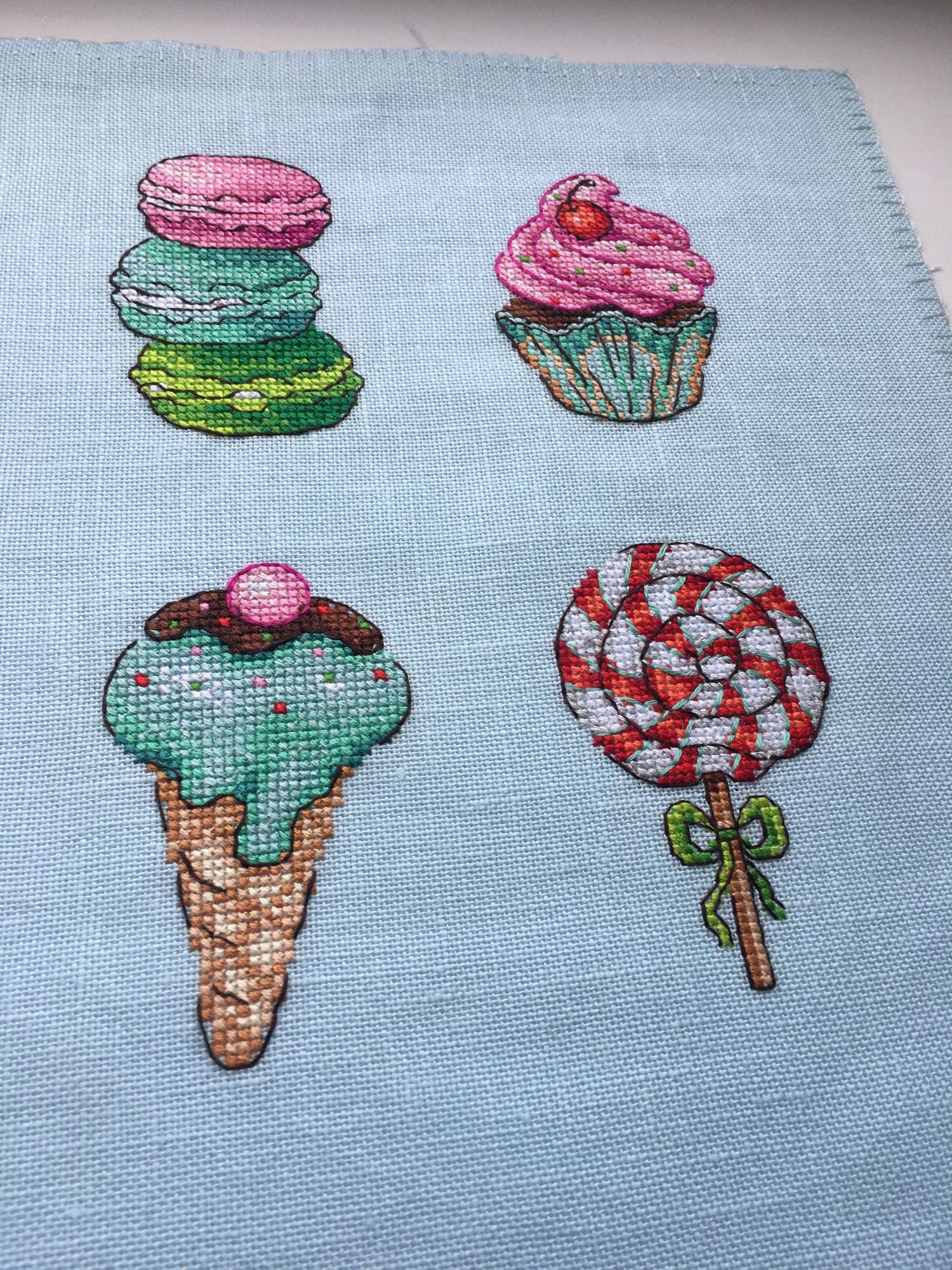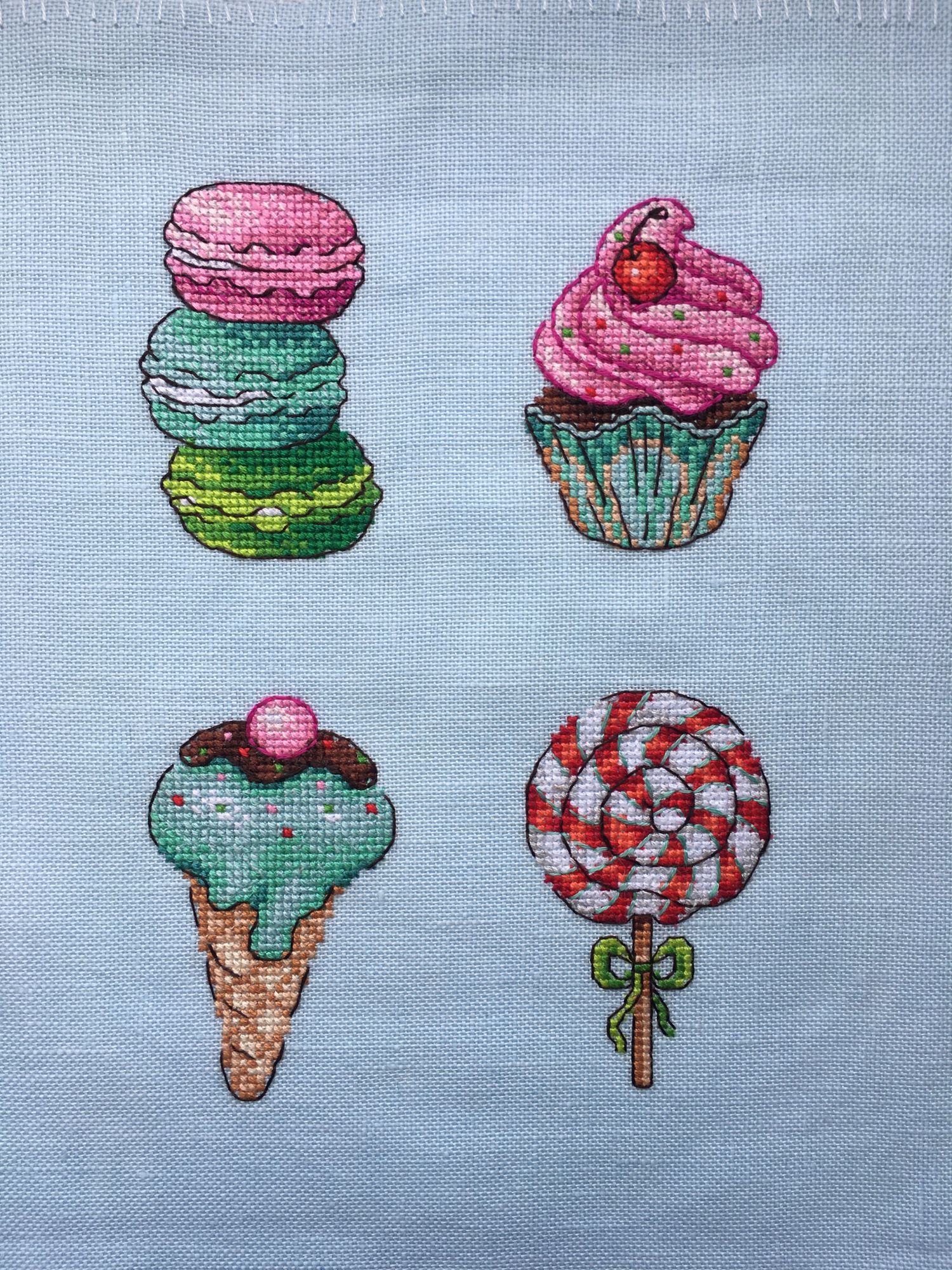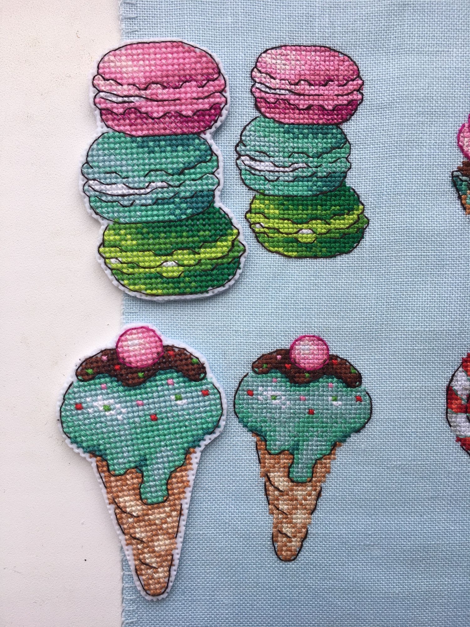 23 июля 2022 Оставались у меня остатки от набора МП Студия Р-272, Сладости для радости. Магниты, и ниток достаточно много было, решила вышить второй раз, но уже на равномерке голубого цвета. Вот что из этого получилось МП Студия Р-272, Сладости для радости. Магниты Так как равномерка была 32 каунта, то младости подучились поменьше размером (в наборе пластиковая канва 14 каунта), для сравнения на фото магниты из первого отлива на пластике. Всех ниток кроме одного цвета (номер 8 на планшетке) хватило на второй отшив, нехвативший цвет подобрала в нитках DMC цвет 992. Разница в заменённом цвете почти незаметна (мятный цвет в бленде на мороженом в рожке). Если надо будет вышить ещё эти сладости, то с удовольствием повторю процесс, он легкий и доставляет море удовольствия, бэк не сложный)))) nogres, 19199707770, Дикая белочка и 6 других сказали спасибо Поделиться сообщением Ссылка на сообщение