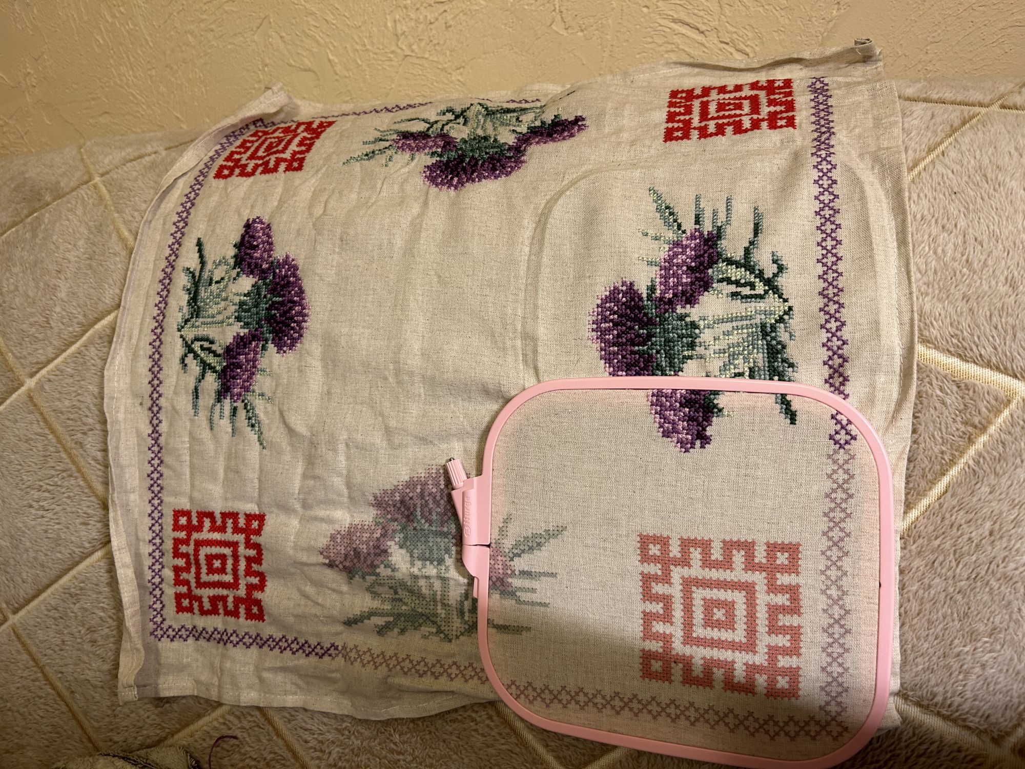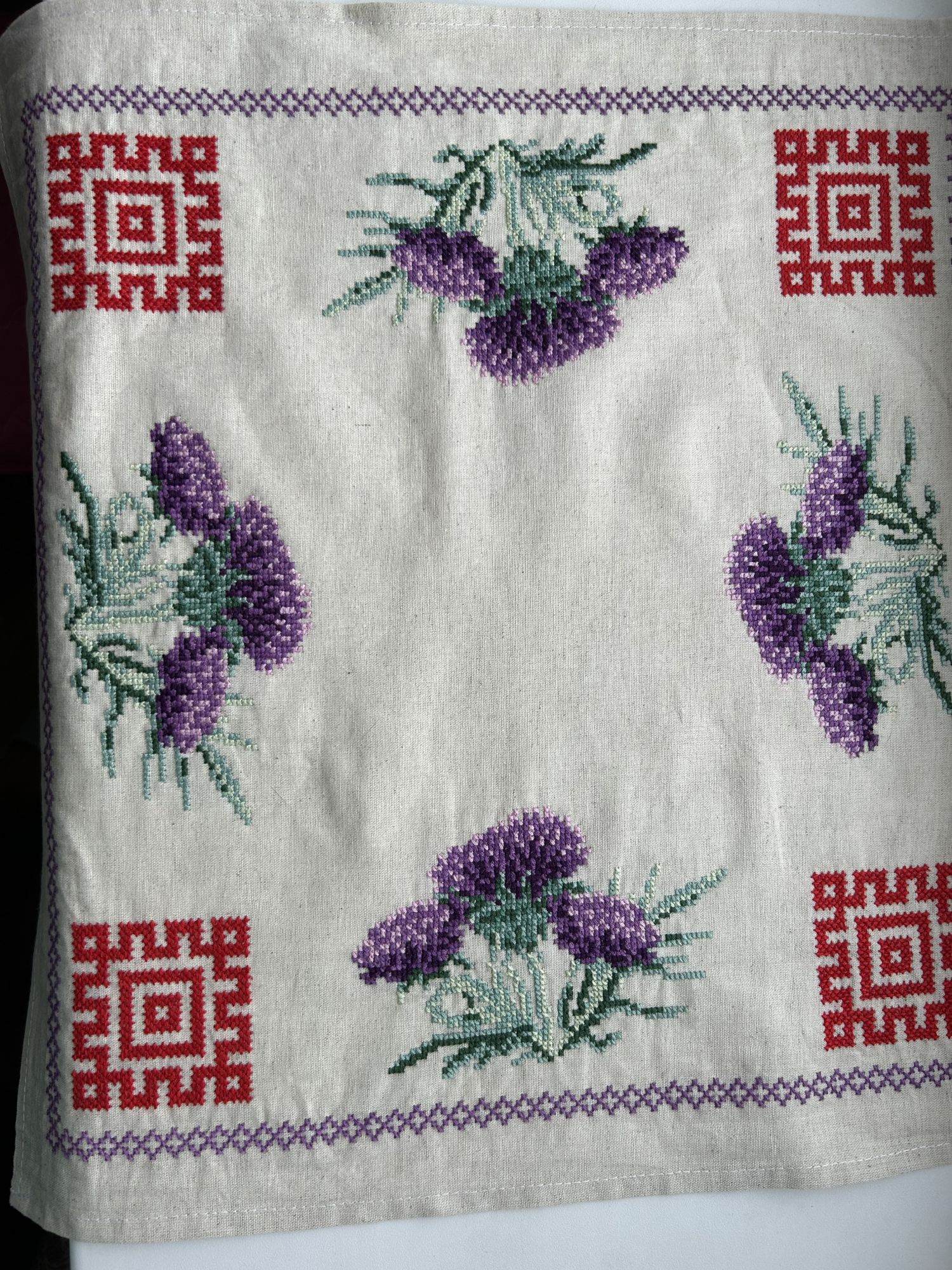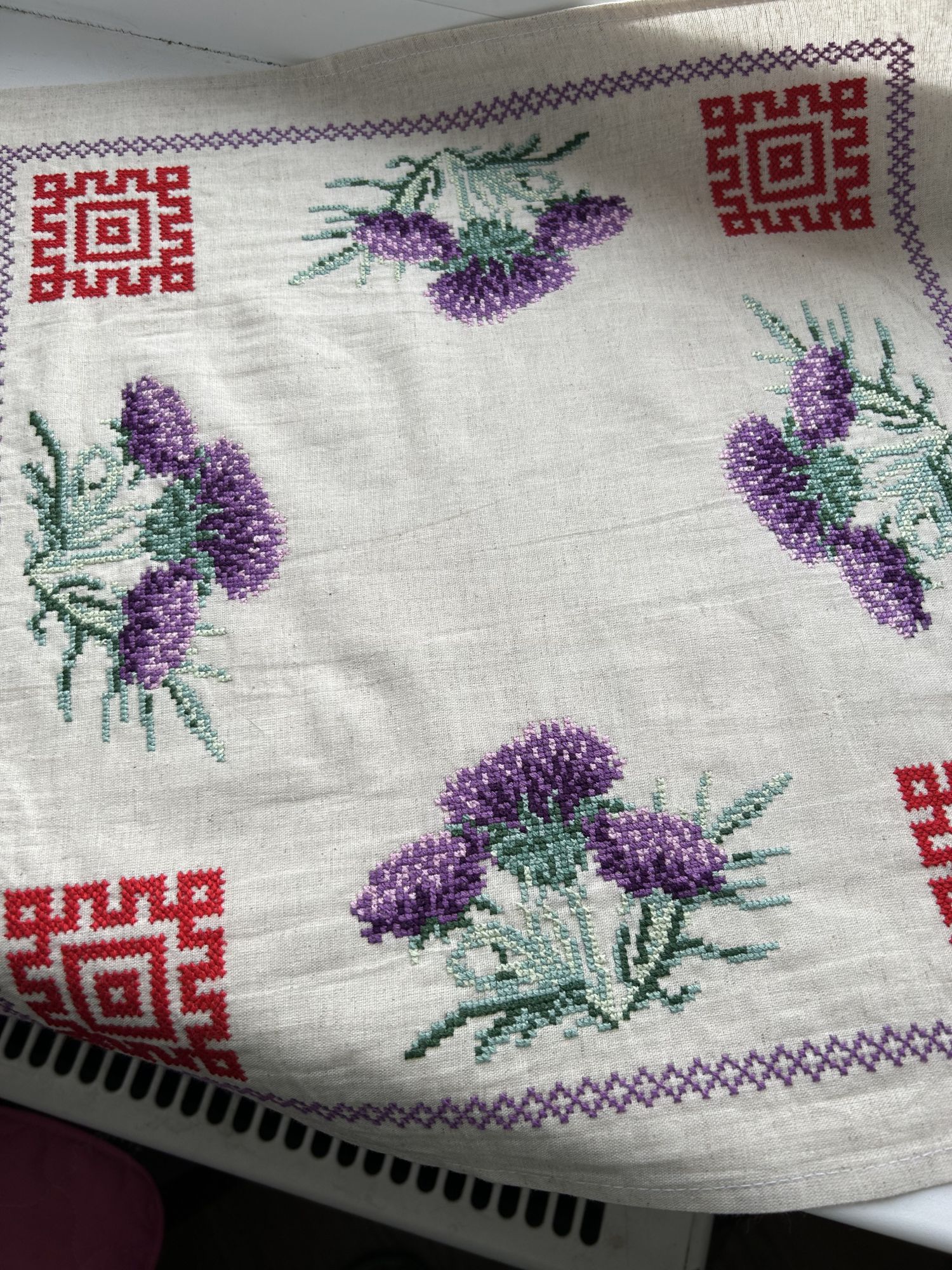 9 июля 2023 Второй завершенной работой была скатерть от Каролинки с репейником на будущее учла некоторые моменты по работе с подобными прикладными вещами: 1) не натягивать эту вышивку на пяльцы в барабан, нужно, чтобы натяжка была минимальная, чтобы нить не перетягивать работу; 2) вышивать с небольшим натяжением нити, не стягивая крестики. Процесс в целом понравился, крестики не очень ровные получаются, но если вышивать неспешно, то они выравниваются. Гало4ка, nogres, relax_cross_stitch и 3 других сказали спасибо Поделиться сообщением Ссылка на сообщение