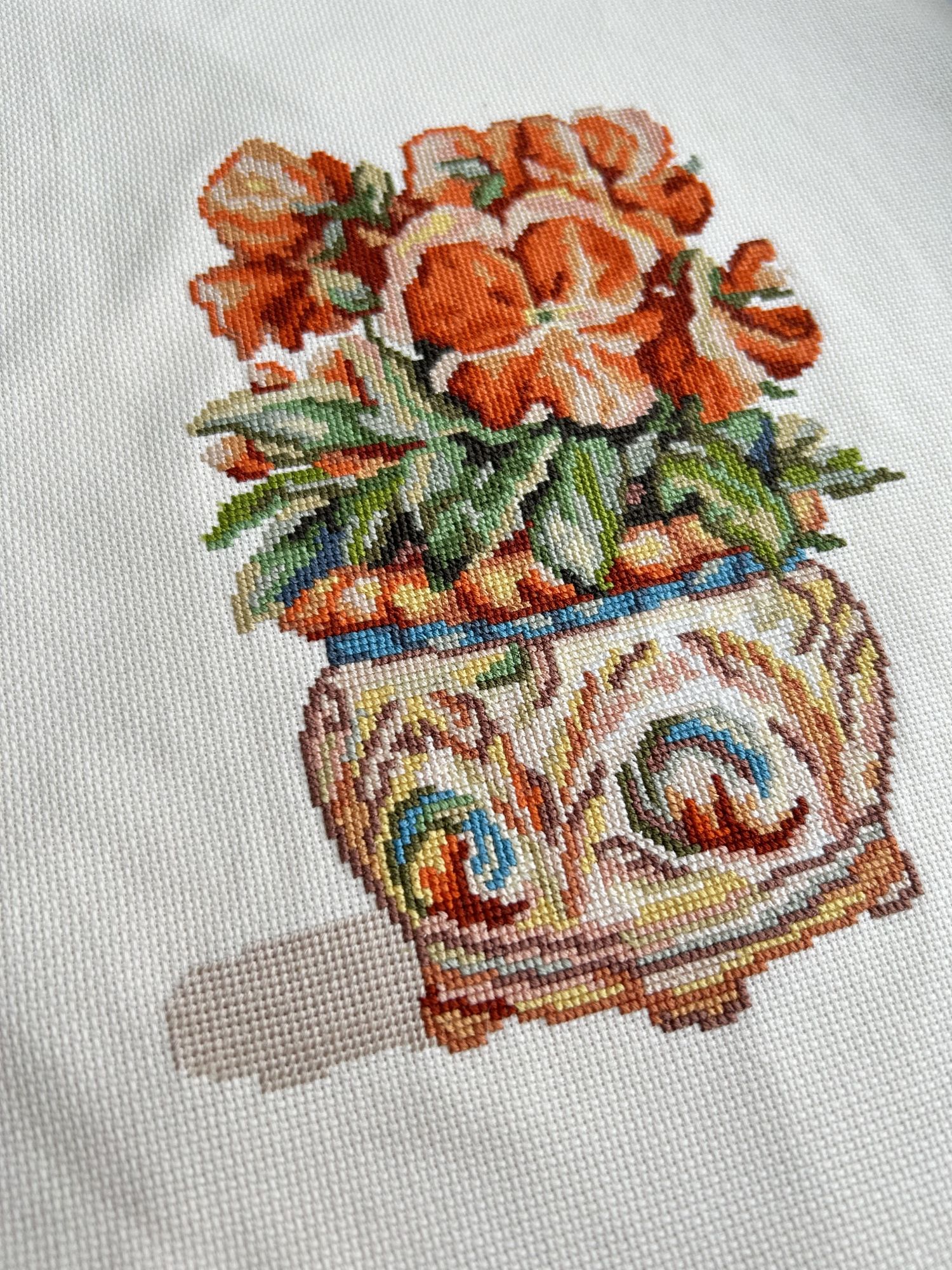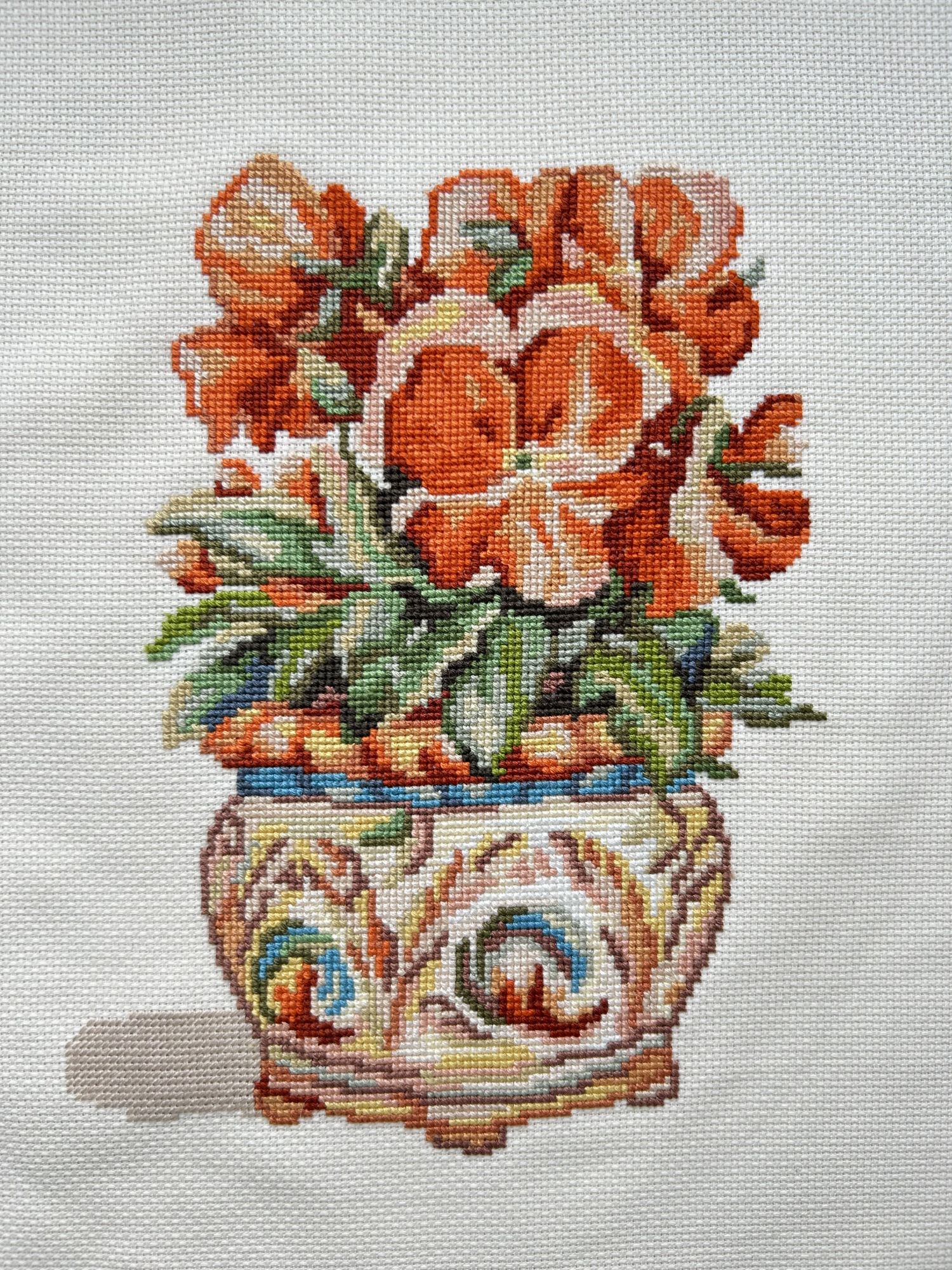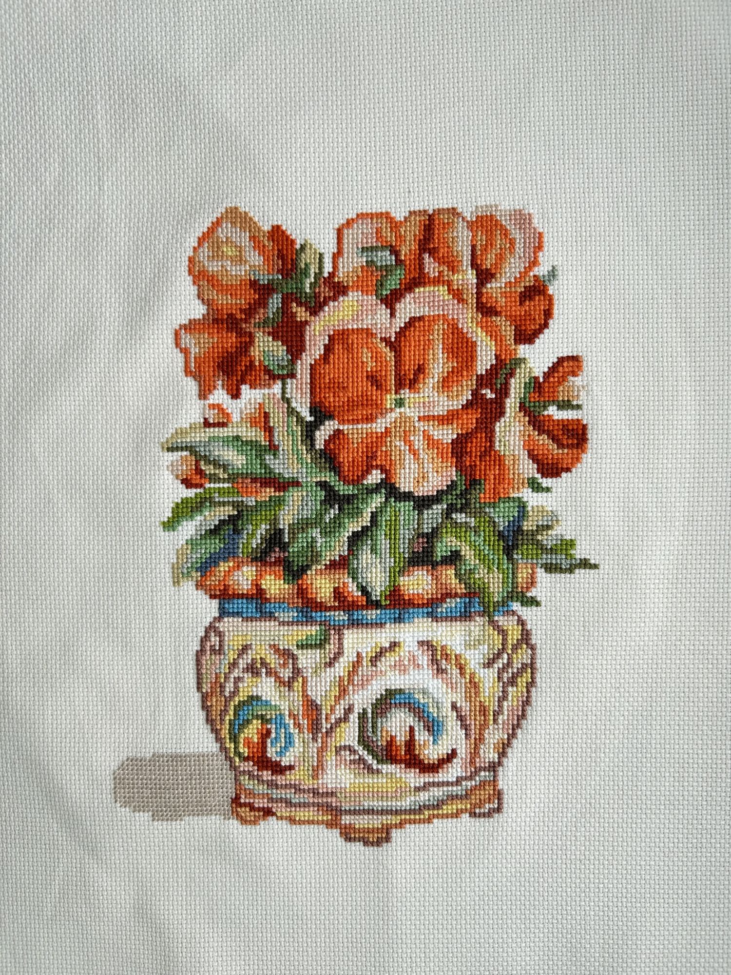 27 июня 2023 На днях посчастливилось мне приобрести всю серию фиалок в горшках от РТО и тут же начала самую симпатичную из них RTO C189 Алые фиалки процесс летит, очень легко шьется, основная часть шьется крестом в 2 нити и только тень от горшка вышивается в полукрест в 2 нити. Канва 18 Аида от Zweigart нитки DMC. Вышиваю по оригинальному набору. Millanka, Хозяйка смешных зверей, Auria и 4 других сказали спасибо Поделиться сообщением Ссылка на сообщение