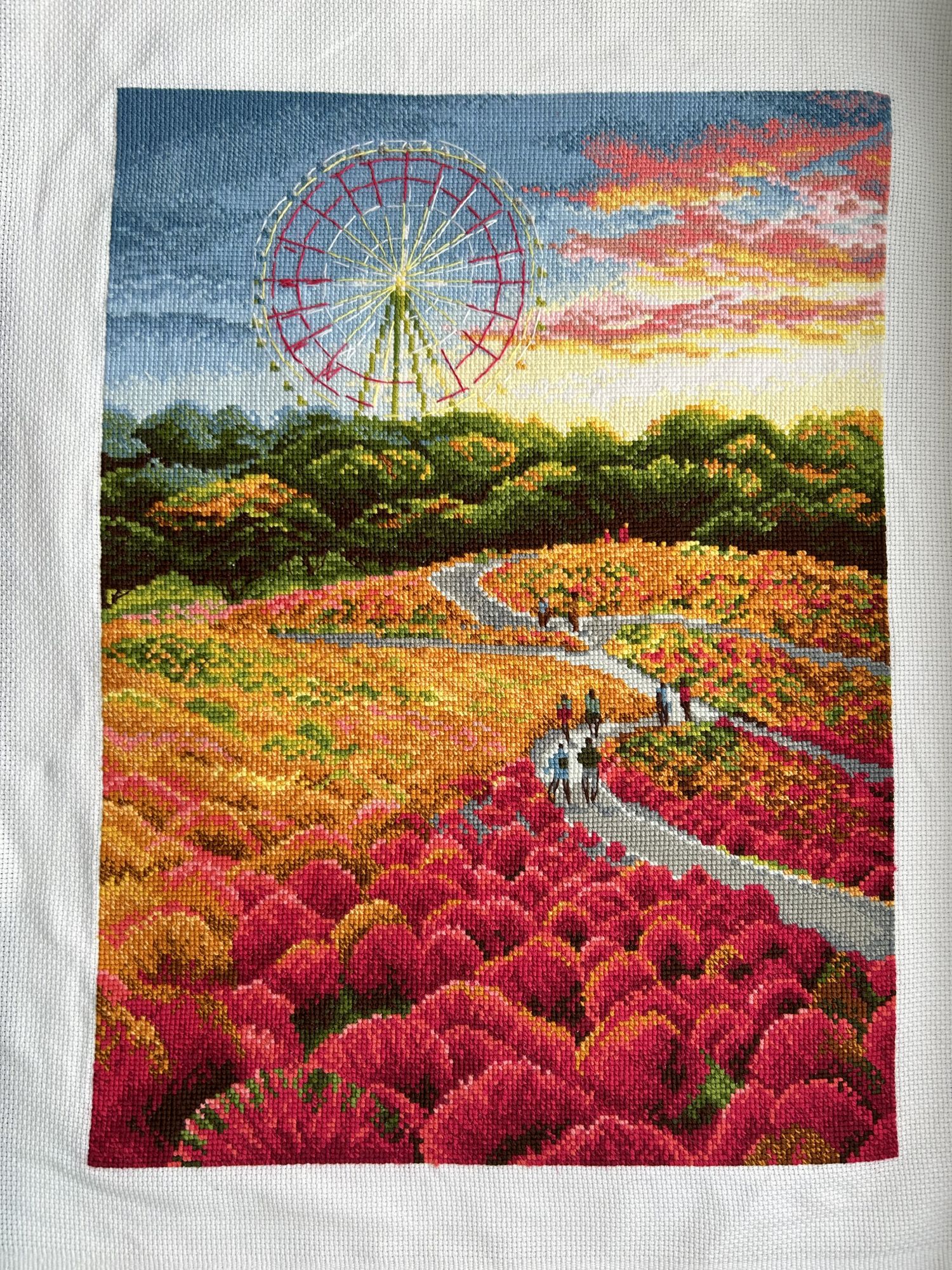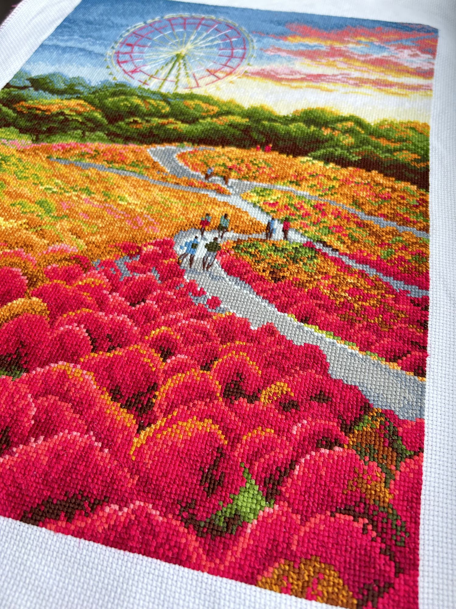 9 июля 2023 Вот наконец-то дошли руки погладить три моих завершенных процесса. Первым был закончен Парк Хитачи от Риолис процесс был увлекательным и очень сочным! На протяжении всего процесса с шерстяными нитками происходили изменения только с двумя цветами - на планшетке они под номерами 6 и 11, они участвуют как в чистом виде так и в блендах, так вот с ними нужно работать очень осторожно, короткими нитками из вышивать, ибо перетираются они очень быстро. Остальные нитки вели себя хорошо, не перетирались и ложились отлично! Канва в наборе не zweigart (об этом я писала ранее), игла неплохая, но я её заменила на более толстую, для удобства вышивания шерстью. Рама для оформления уже приобретена, сегодня постараюсь оформить самостоятельно. В пару к этой работе у меня уже вышит парад Шаров от Риолис relax_cross_stitch, Охотница, nogres и 4 других сказали спасибо Поделиться сообщением Ссылка на сообщение