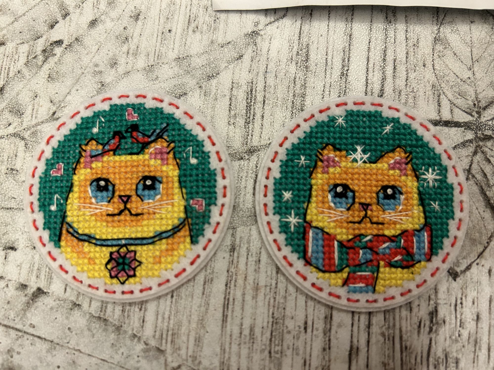 1 ноября 2023 Вышивала на днях магниты от Жар-Птицы МП Студия (Жар-Птица) Т-977 Коты. Значки. Магниты очень понравился процесс, нитки на фетр укладывать нужно аккуратнее, но иголочка в перфорации входит хорошо. Очень понравилось, что оформление легкое - пришивается нитками к заднику. Lady_flame_))), Гало4ка, Хозяйка смешных зверей и 6 других сказали спасибо Поделиться сообщением Ссылка на сообщение