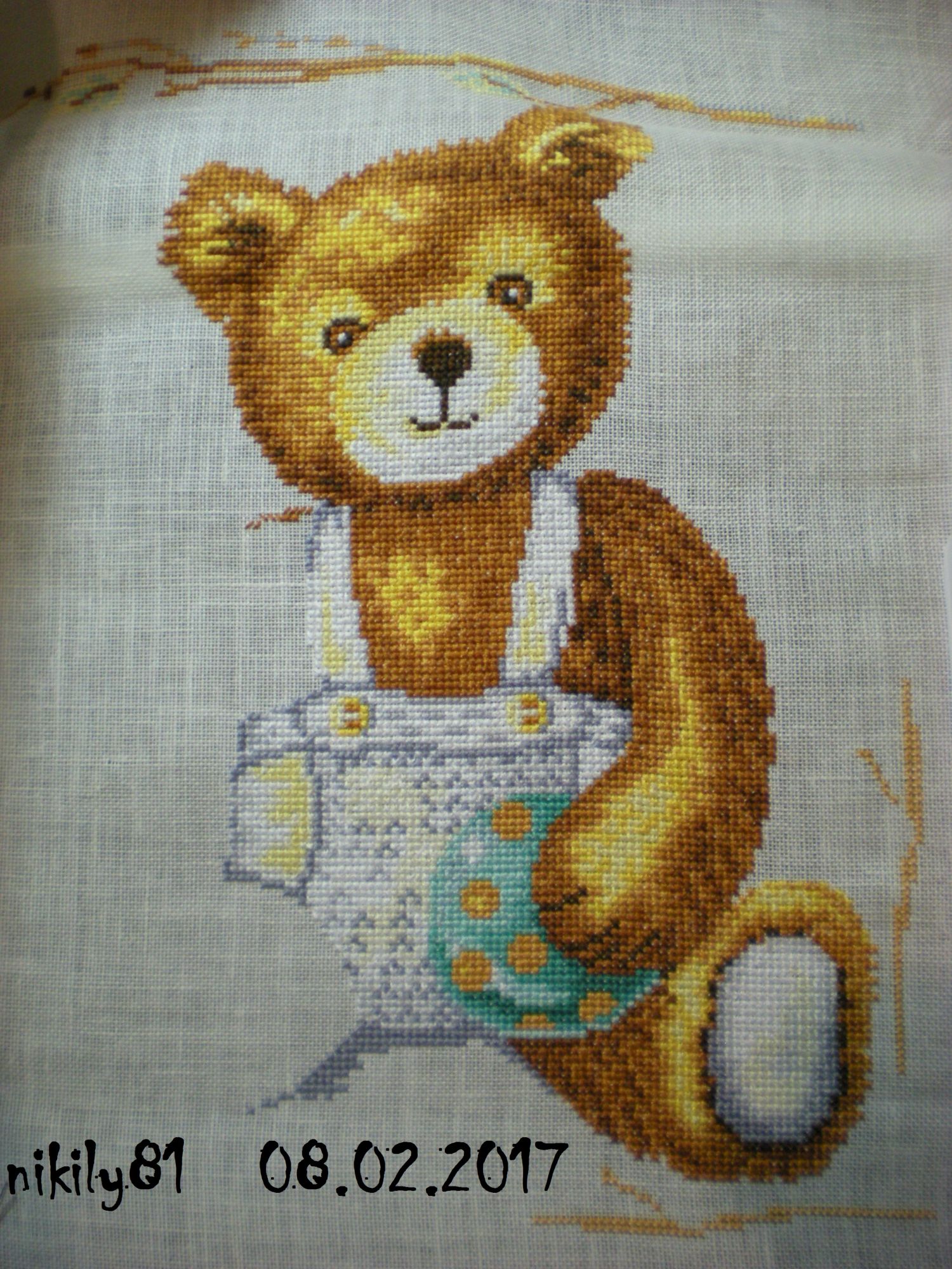 14 февраля 2017 2 минуты назад, nikily81 сказал: Спасибо девушки На подушку решила нашить (по завершении процесса конечно) шармики либо пуговки - олени, снежинки, звёздочки... В общем всё что понравится и найду на новогоднюю тему - добавлю. И будет подушенция выполнять чисто декоративно-интерьерную функцию в зимне-новогодний сезон. Яна, очень рада видеть тебя в своей теме. И да, совсем незаметно и не торопясь вышивается - в удовольствие, смакую каждую деталь вышивки С чаем\кофе\корицей экспериментирую давно, каждый раз разная ткань получается. Если просто цвет нужен, то тканюшку в ёмкость с кипящими ингредиентами кидаешь. А если нужно с разводами - аля Винтаж, то на влажную насыпаешь, сворачиваешь\комкаешь\закрепляешь\кипятишь. С недавних пор красками для ткани красить начала... Пока только учусь.. Отчитываюсь по медведю - процесс завершён Какой здоровский мишка, крестики такие аккуратные Отличный оттенок ткани irisheckin и Welt сказали спасибо Поделиться сообщением Ссылка на сообщение